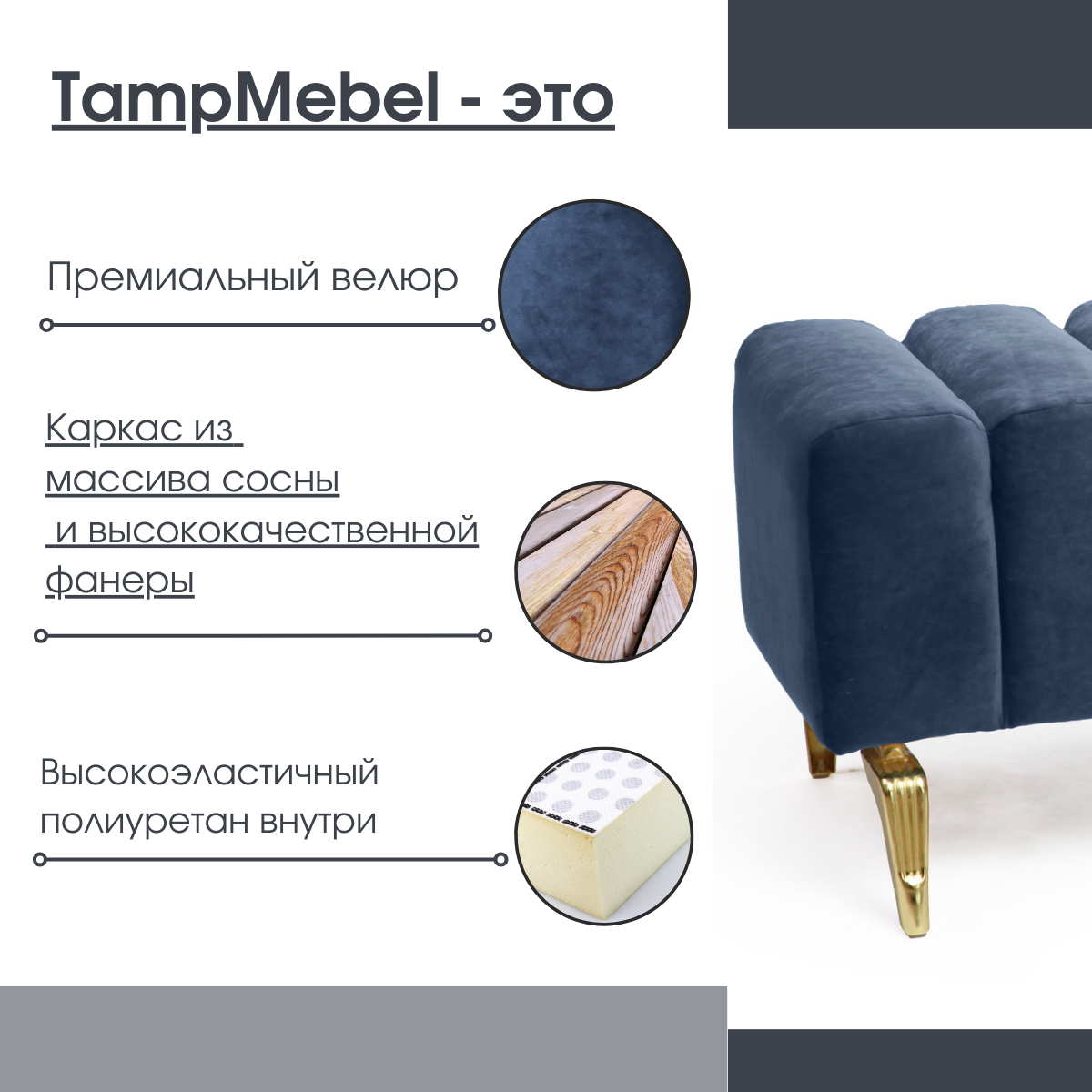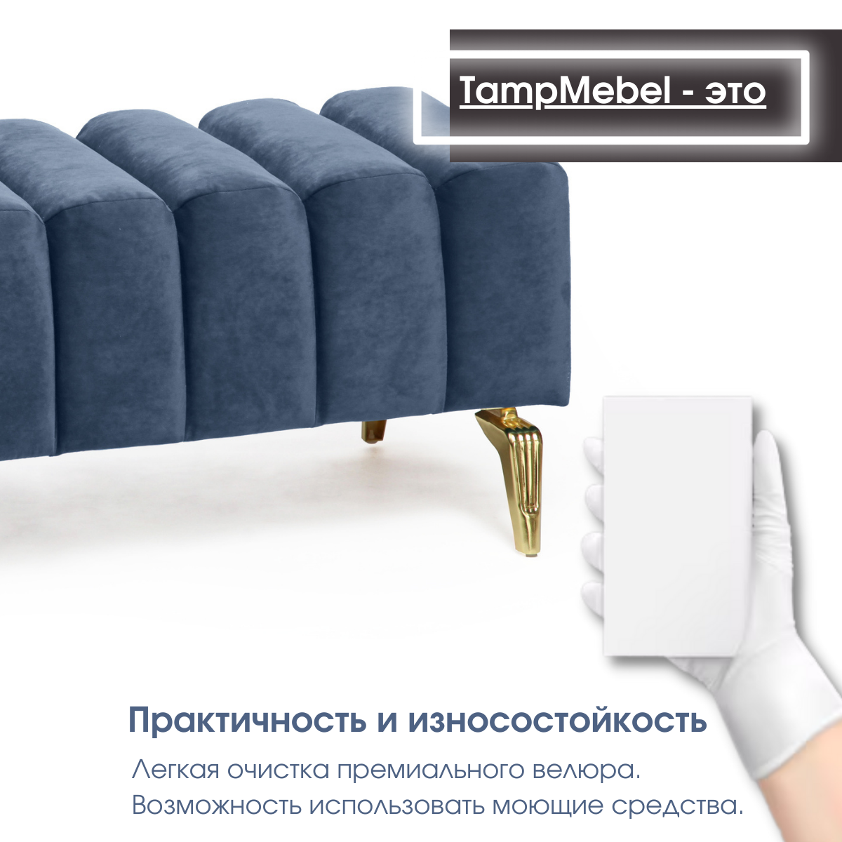 СохранитьБанкетка в спальню, пуфик для прихожей "Santorini" с изогнутыми ножками, ткань велюр, синяя интересное: