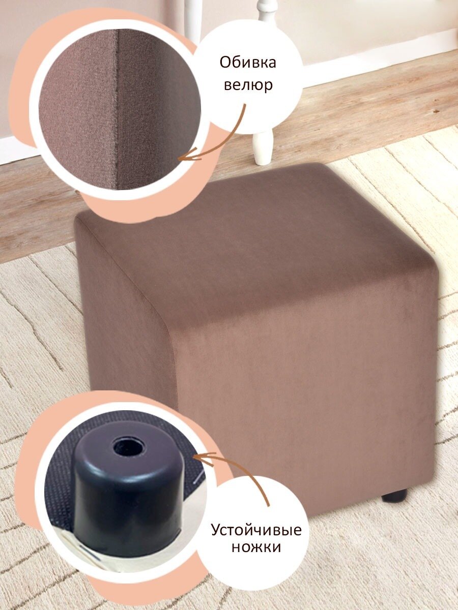 Пуф куб квадратный в прихожую велюр мягкий / Пуфик для туалетного столика Коричневый 37*37*38 см интересное: