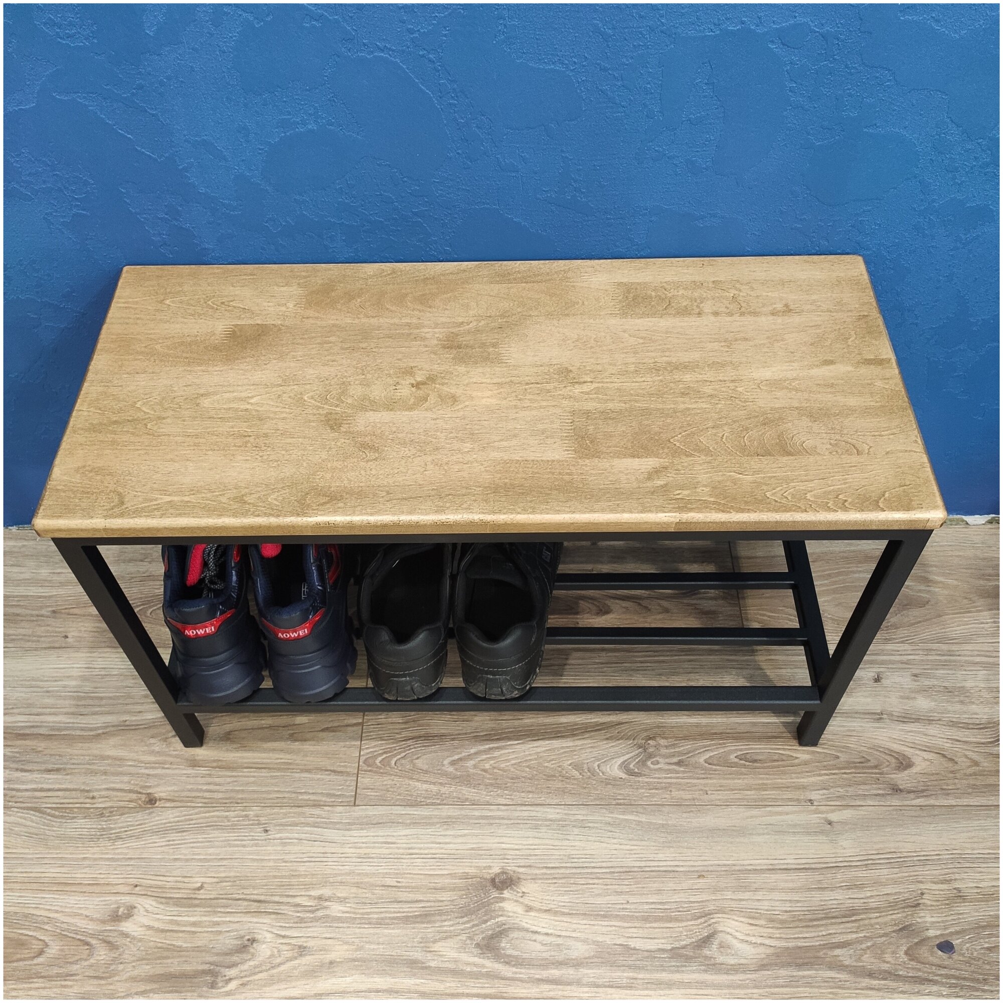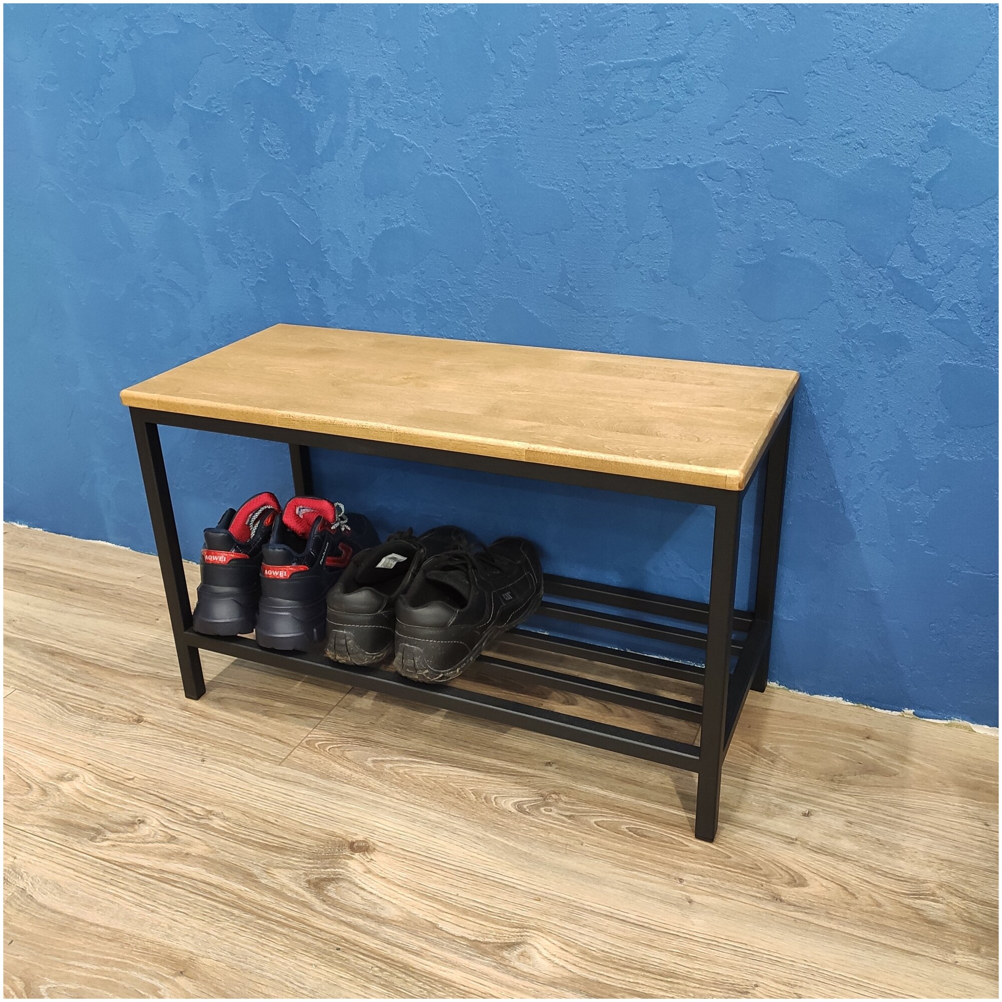 Банкетка-обувница "Классик" в стиле лофт. Металл и массив березы. 80х31х42 см