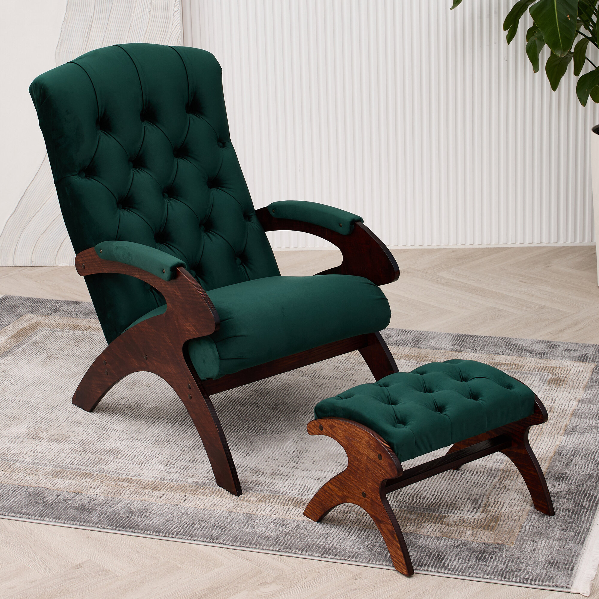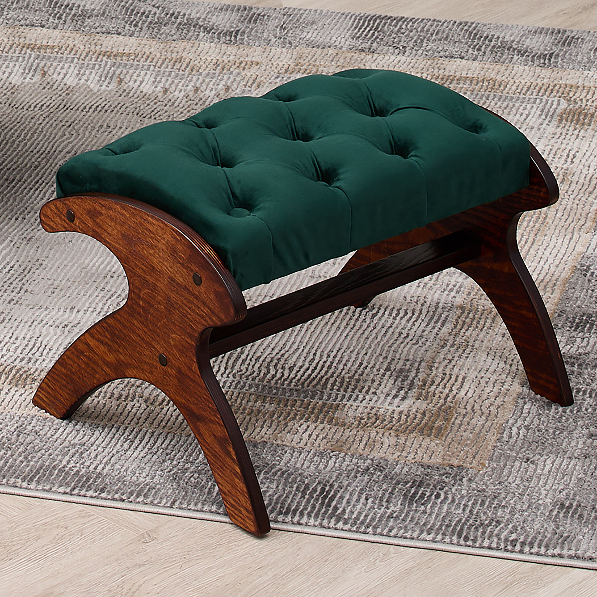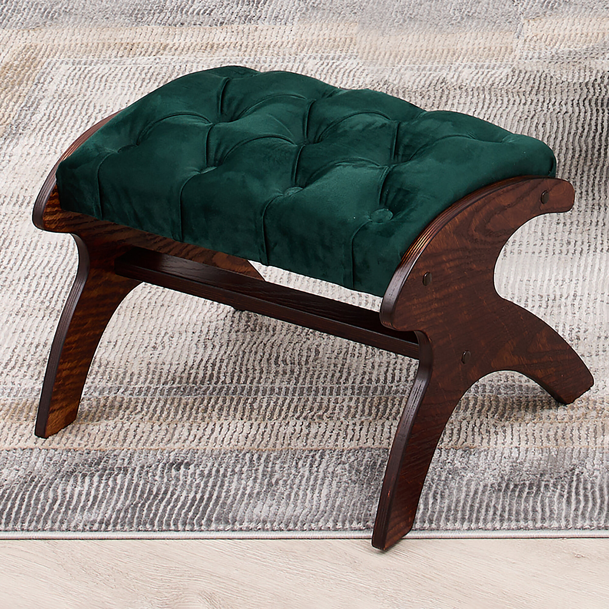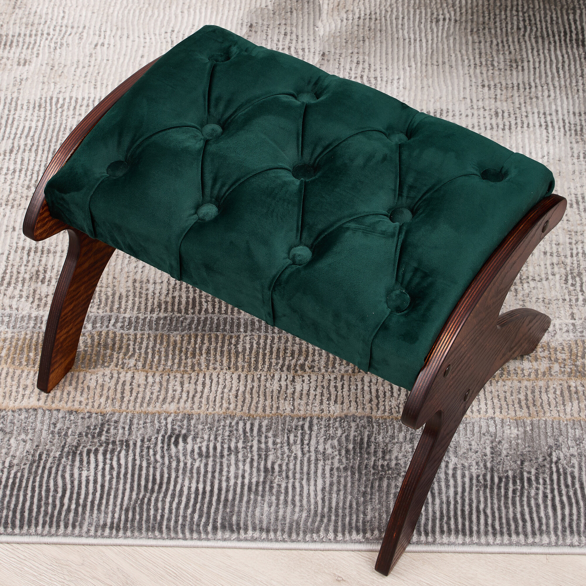 Банкетка для ног AVK Герцог, велюр, каретная стяжка, изумрудная/венге, 55х40х32 см