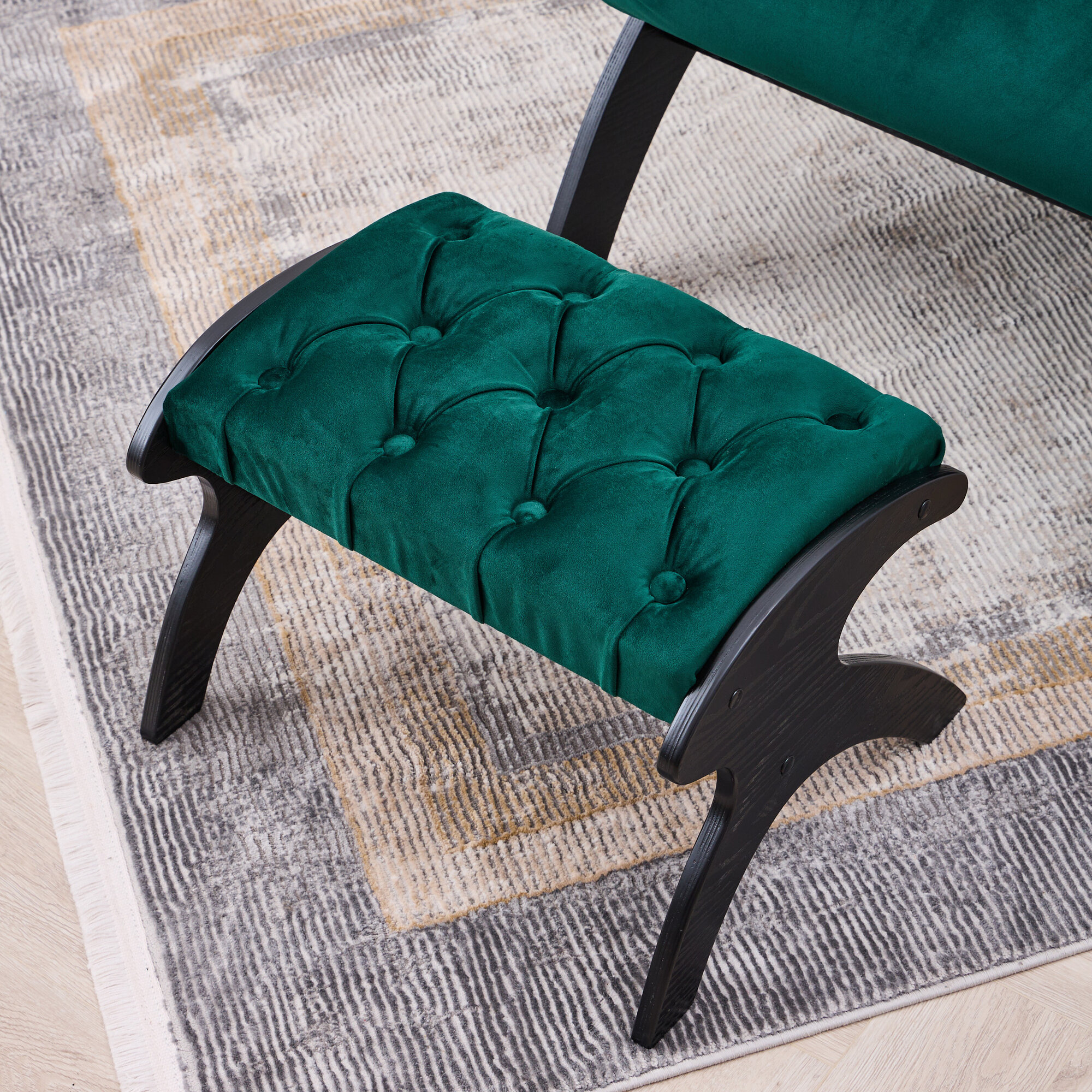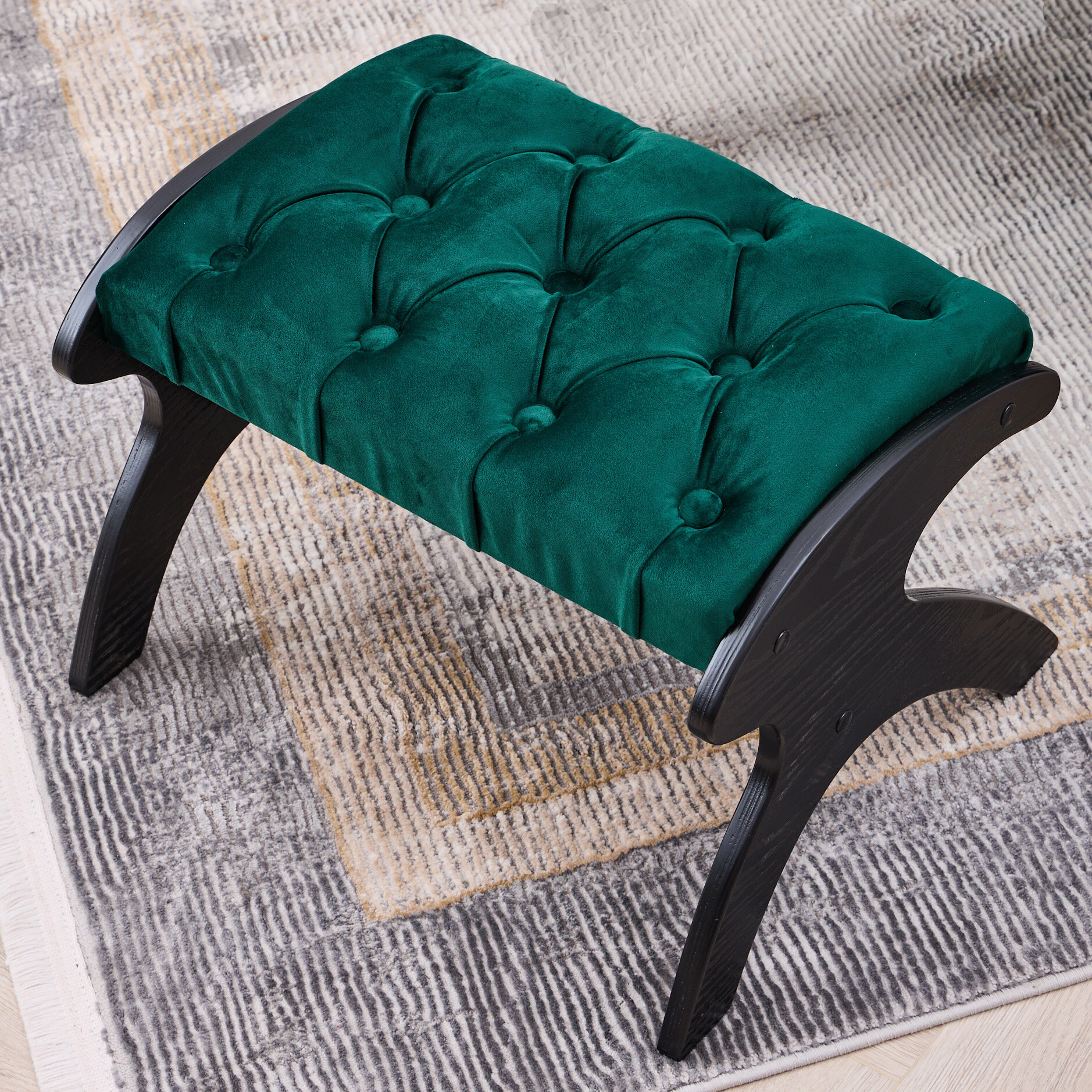 Купить Банкетка для ног AVK Герцог, велюр, каретная стяжка, изумрудная/венге, 55х40х32 см