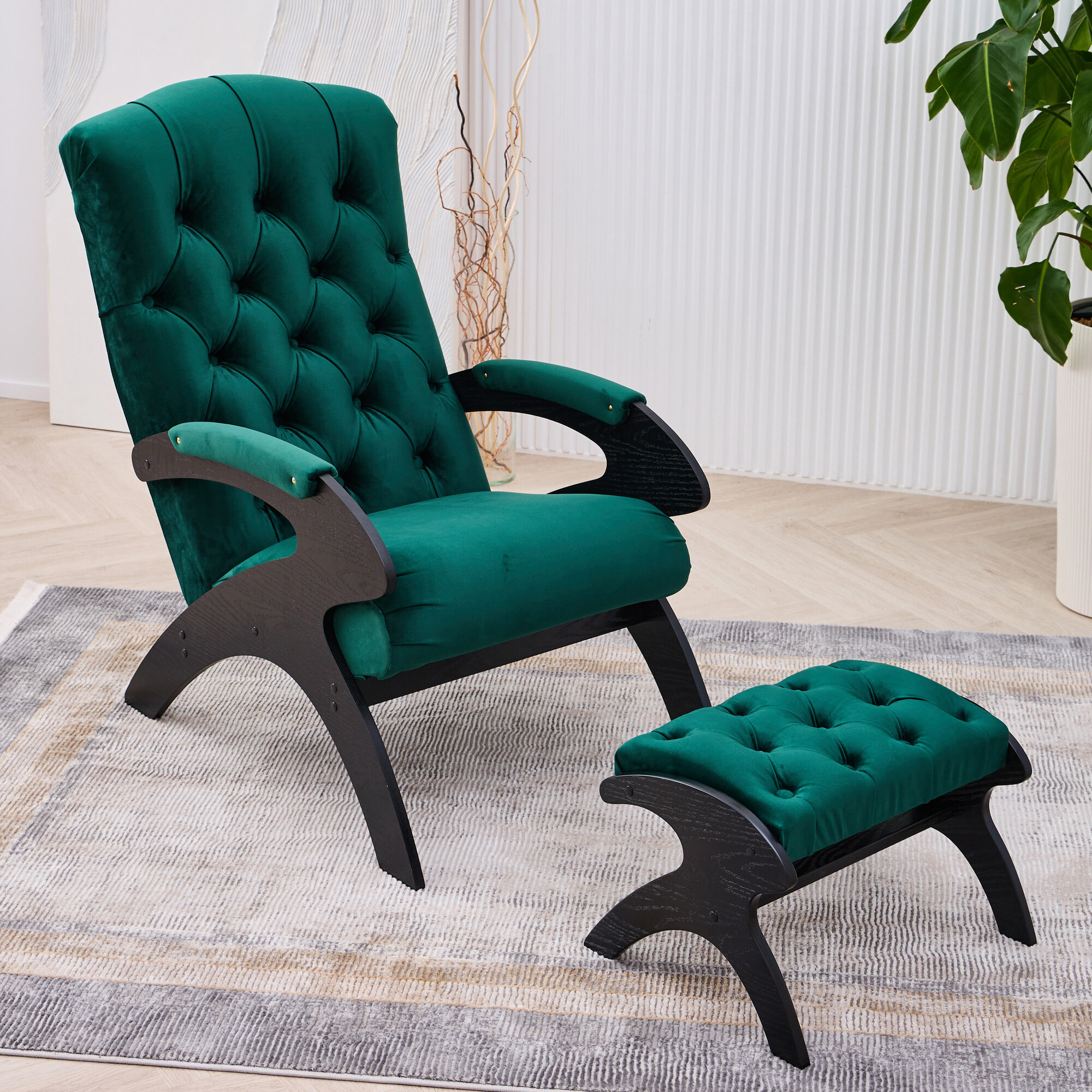 Банкетка для ног AVK Герцог, велюр, каретная стяжка, изумрудная/венге, 55х40х32 см интересное: