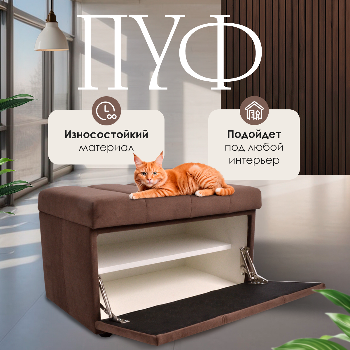 Обувница для прихожей с сиденьем закрытая полоса / Пуф мягкий велюр / Банкетка в прихожую Ультра шоколад 59.5*38.5*38 интересное: