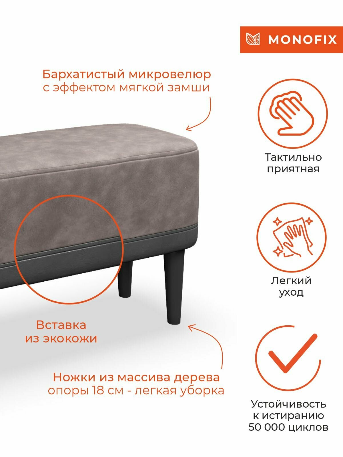 Банкетка MONOFIX одос, велюр, серый жемчуг (№8)