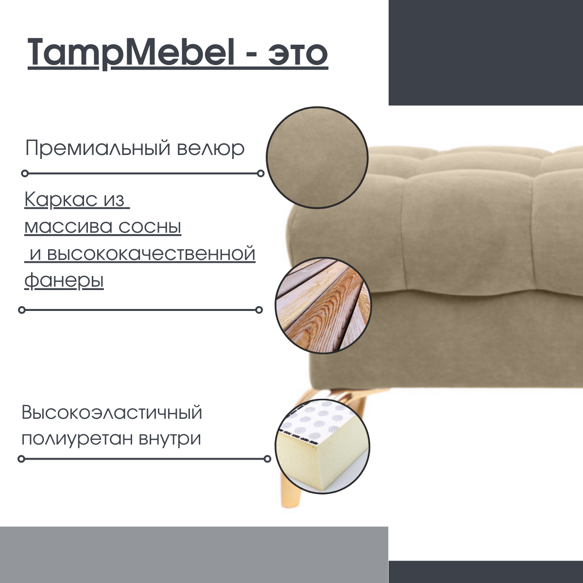 СохранитьБанкетка пуфик "Stella", ткань велюр, "TampMebel" светло-бежевая интересное: