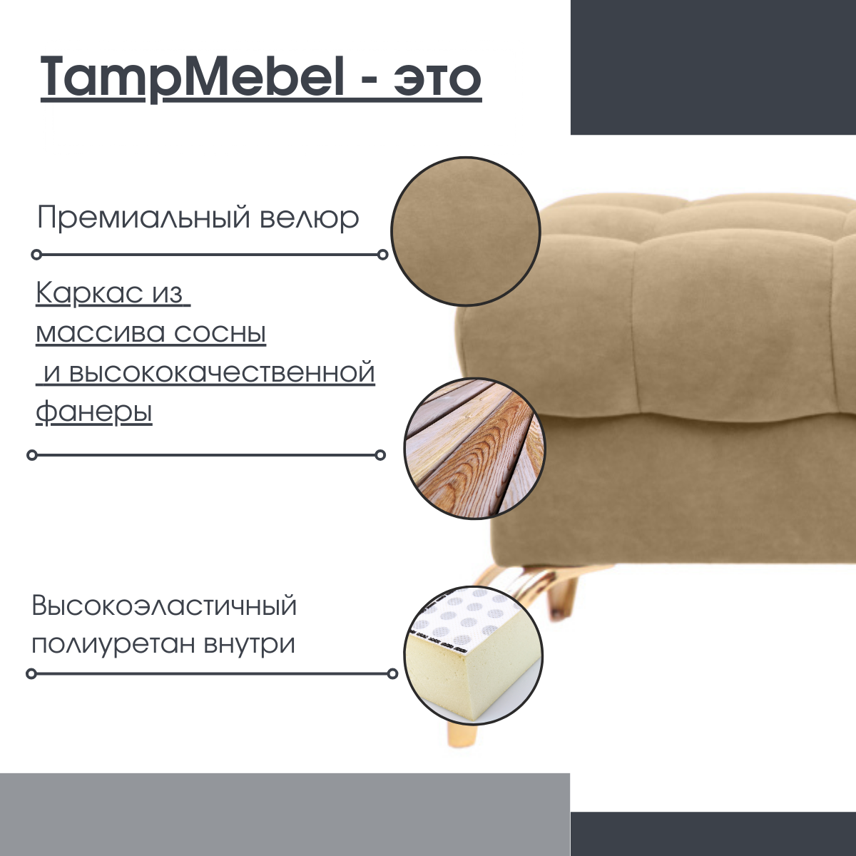 СохранитьБанкетка пуфик "Stella", ткань велюр, "TampMebel" темно-бежевая интересное: