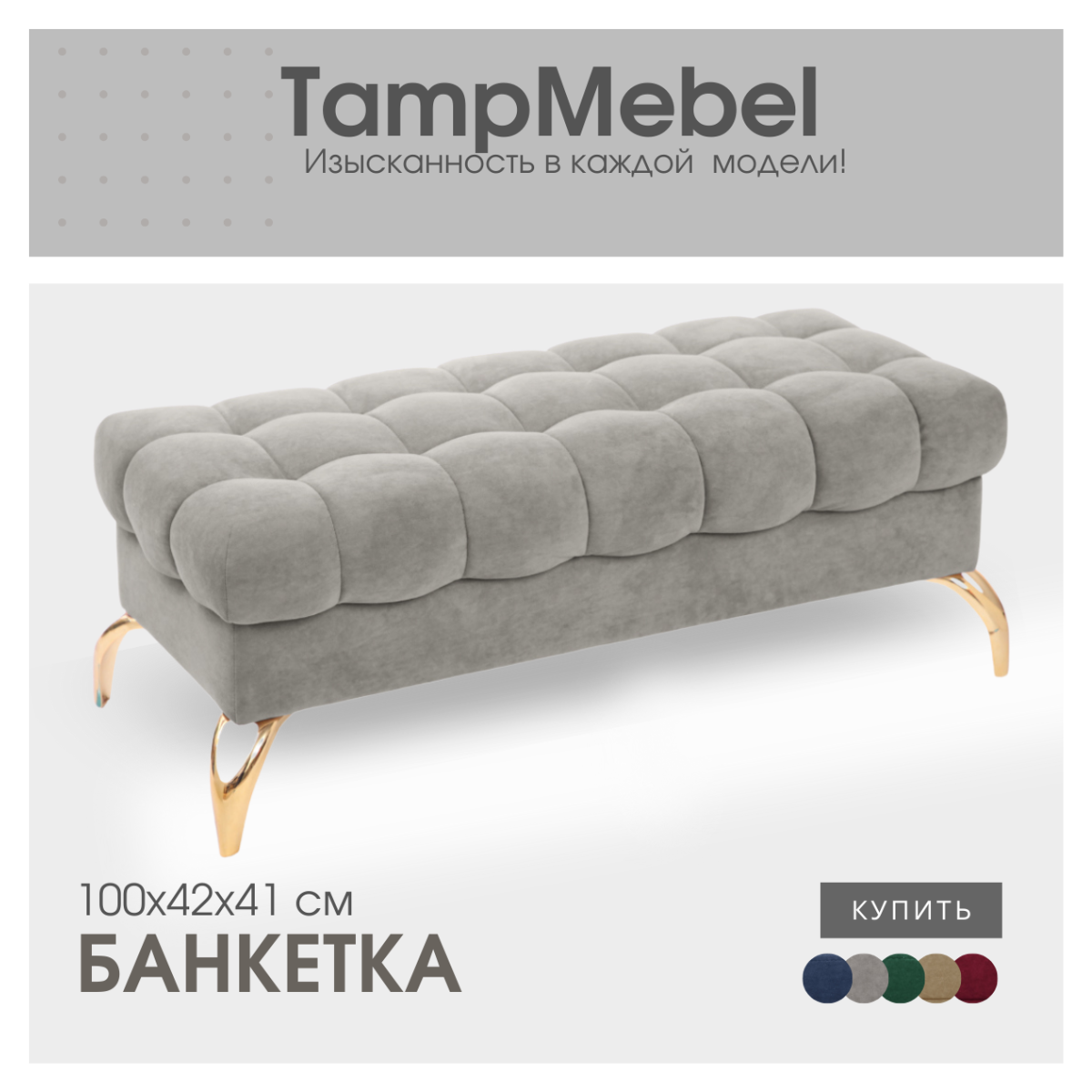 Купить Банкетка пуфик "Stella", ткань велюр, "TampMebel" светло-серая