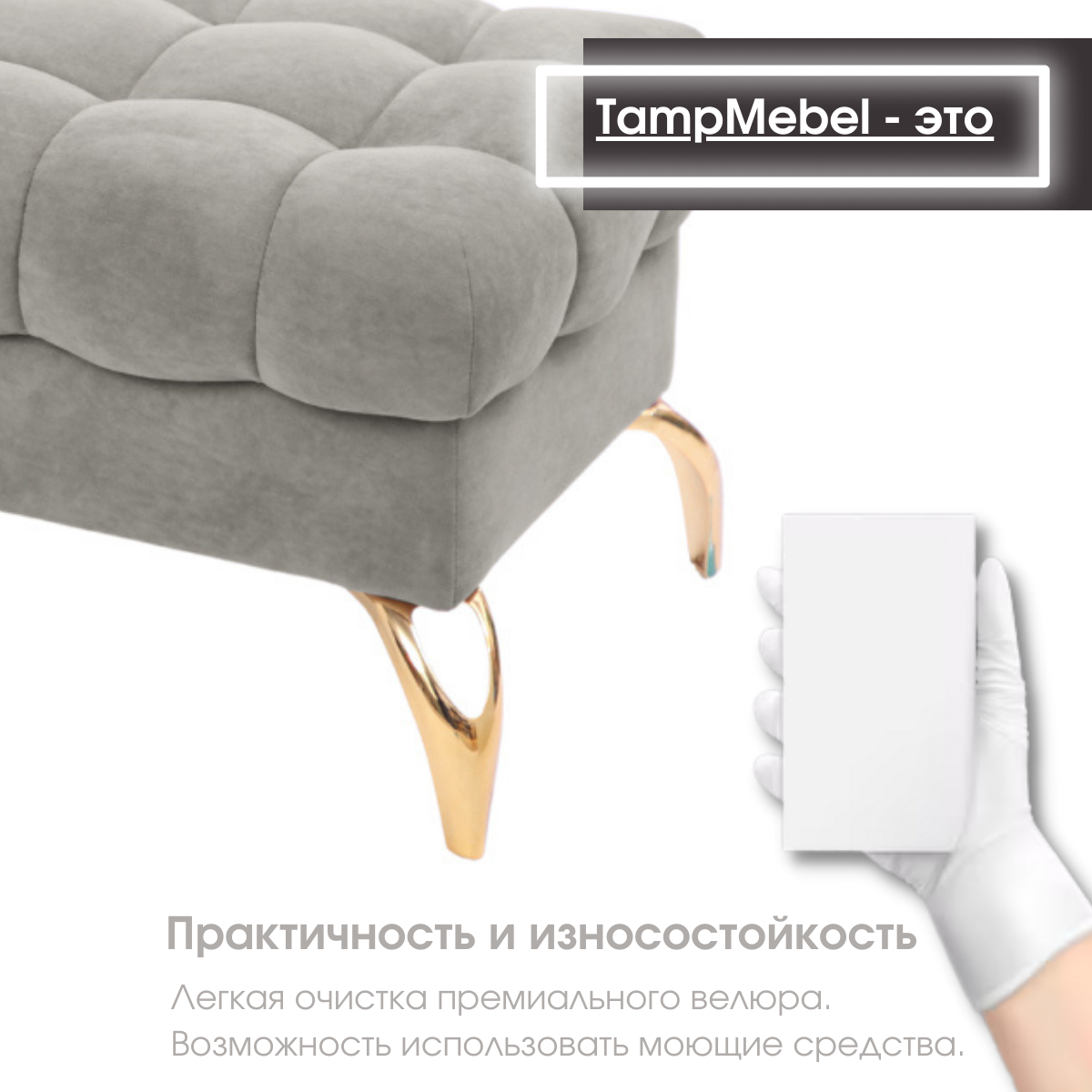 СохранитьБанкетка пуфик "Stella", ткань велюр, "TampMebel" светло-серая интересное: