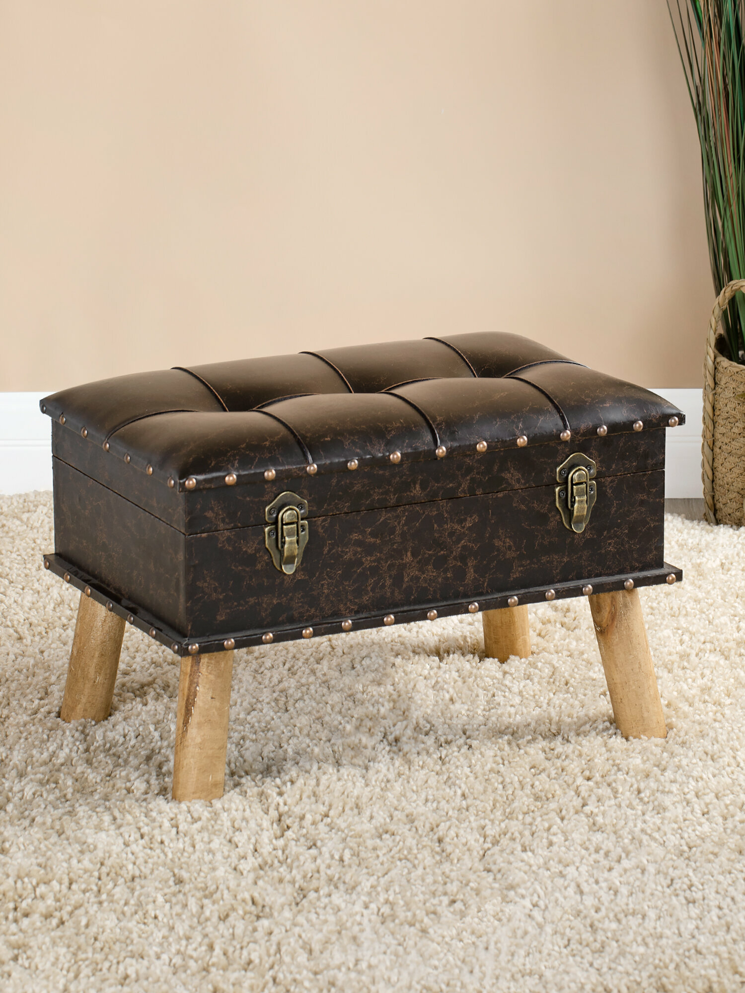 Обувница для прихожей с сиденьем закрытая / Пуф мягкий из экокожи / Банкетка в прихожую Бежевый 59.5*38.5*38