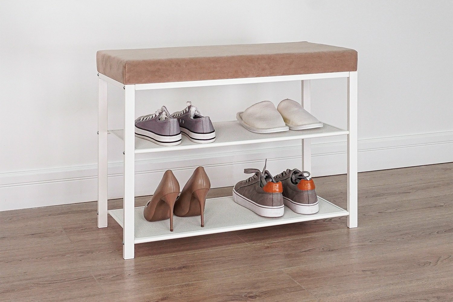 Купить Банкетка для обуви БП3 с 3 полками и ящиком цвет светло-коричневый,44х51,6х33 см, матовый коричневый