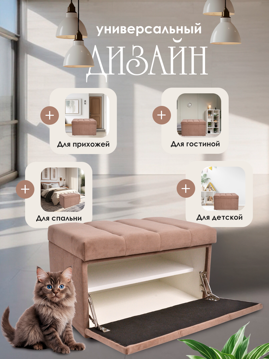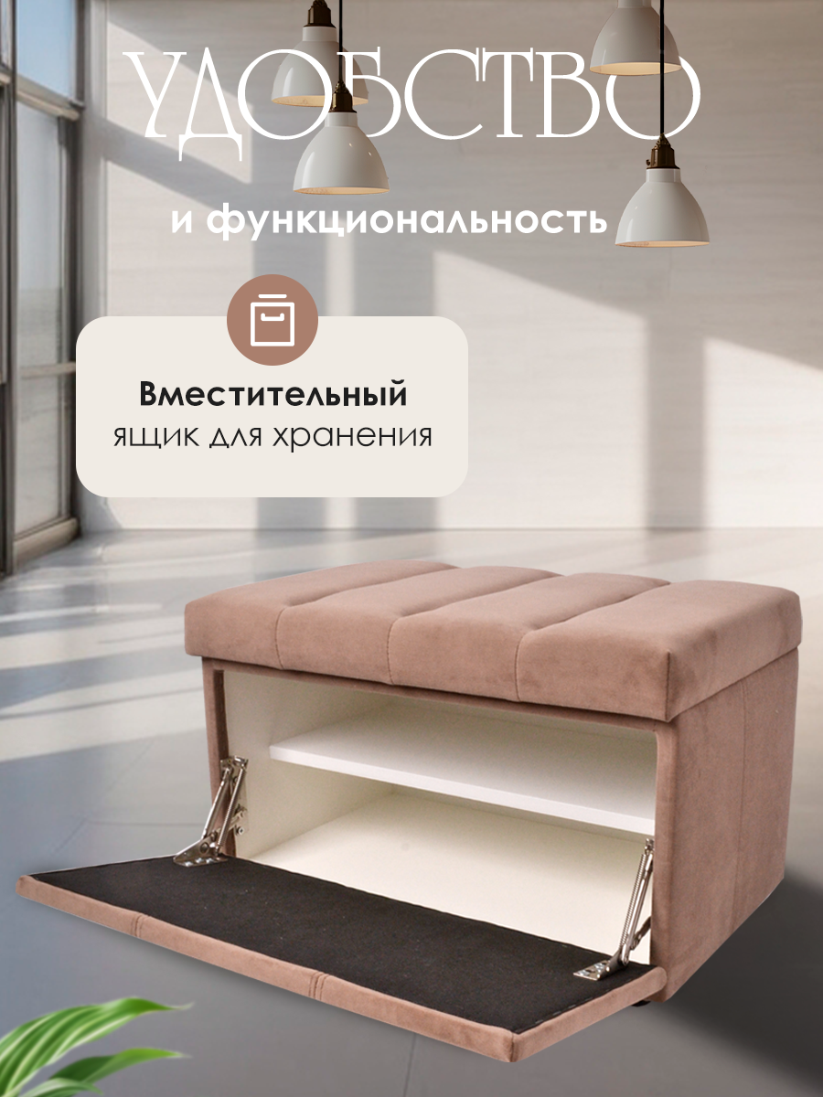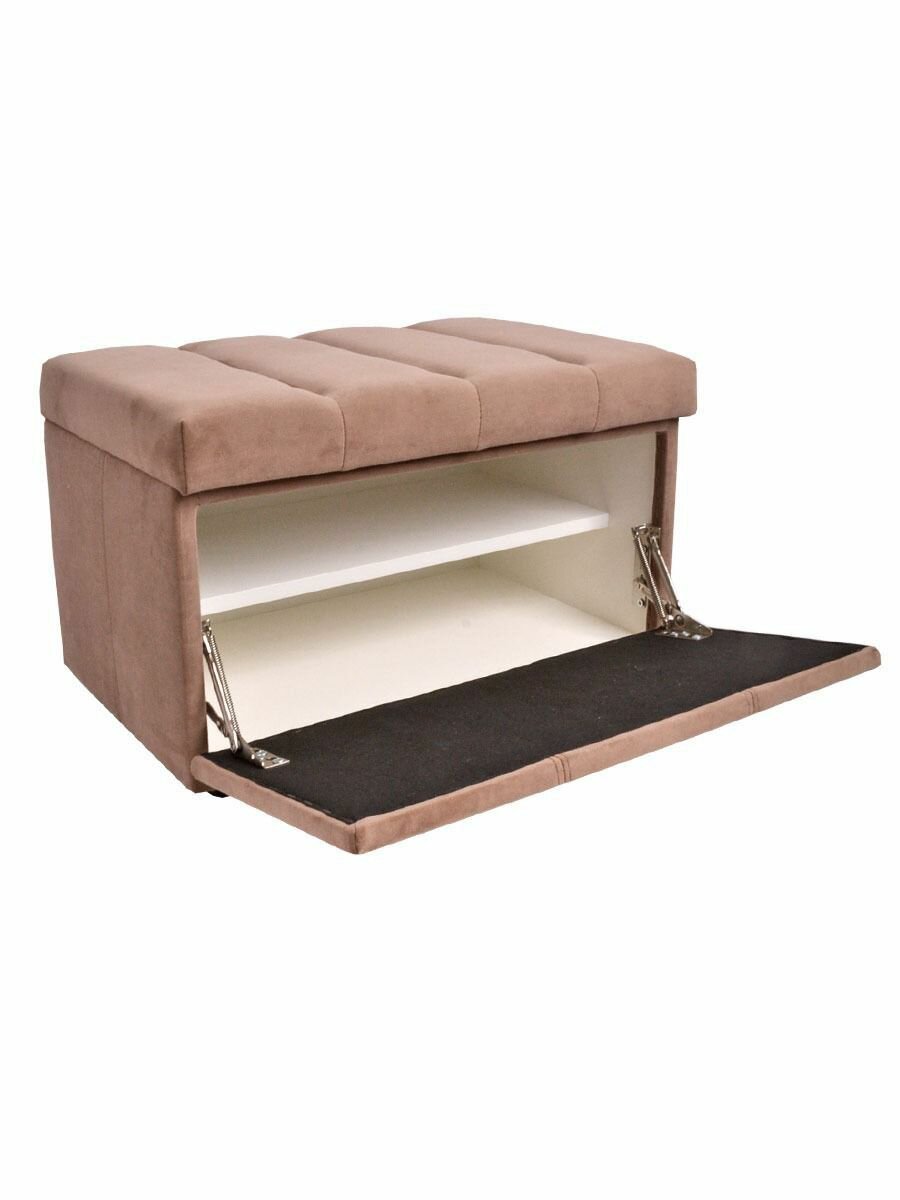 Обувница для прихожей с сиденьем закрытая полоса / Пуф мягкий велюр / Банкетка в прихожую Ультра какао 59.5*38.5*38 интересное: