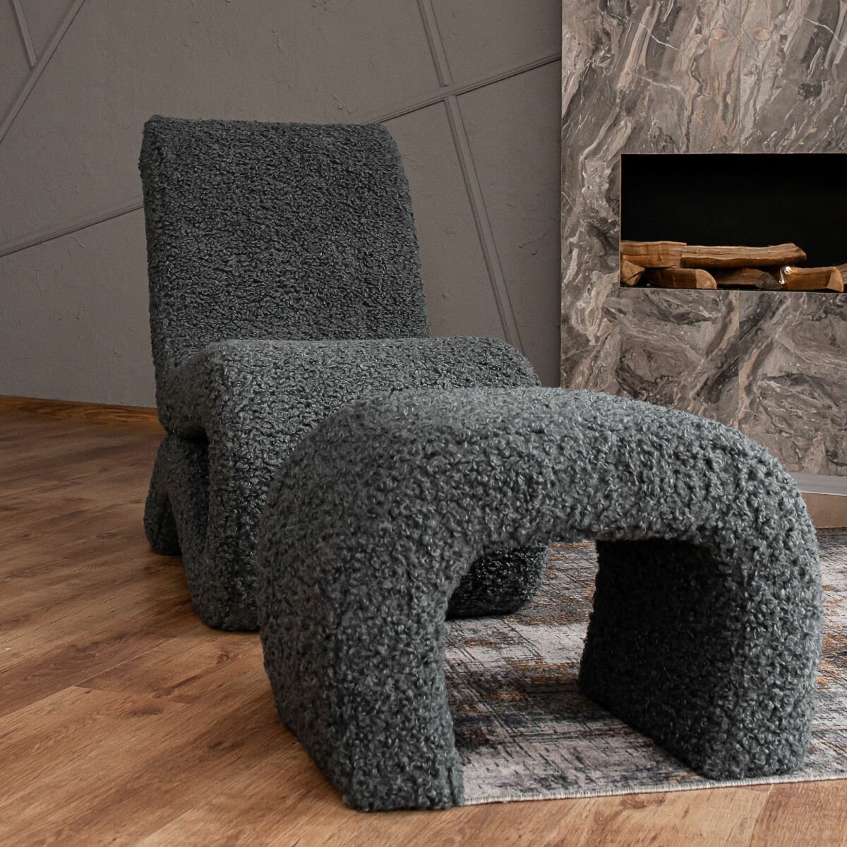 Дизайнерская мягкая банкетка пуф в прихожую, спальню и гостиную Зетта прайм . Титановый графит