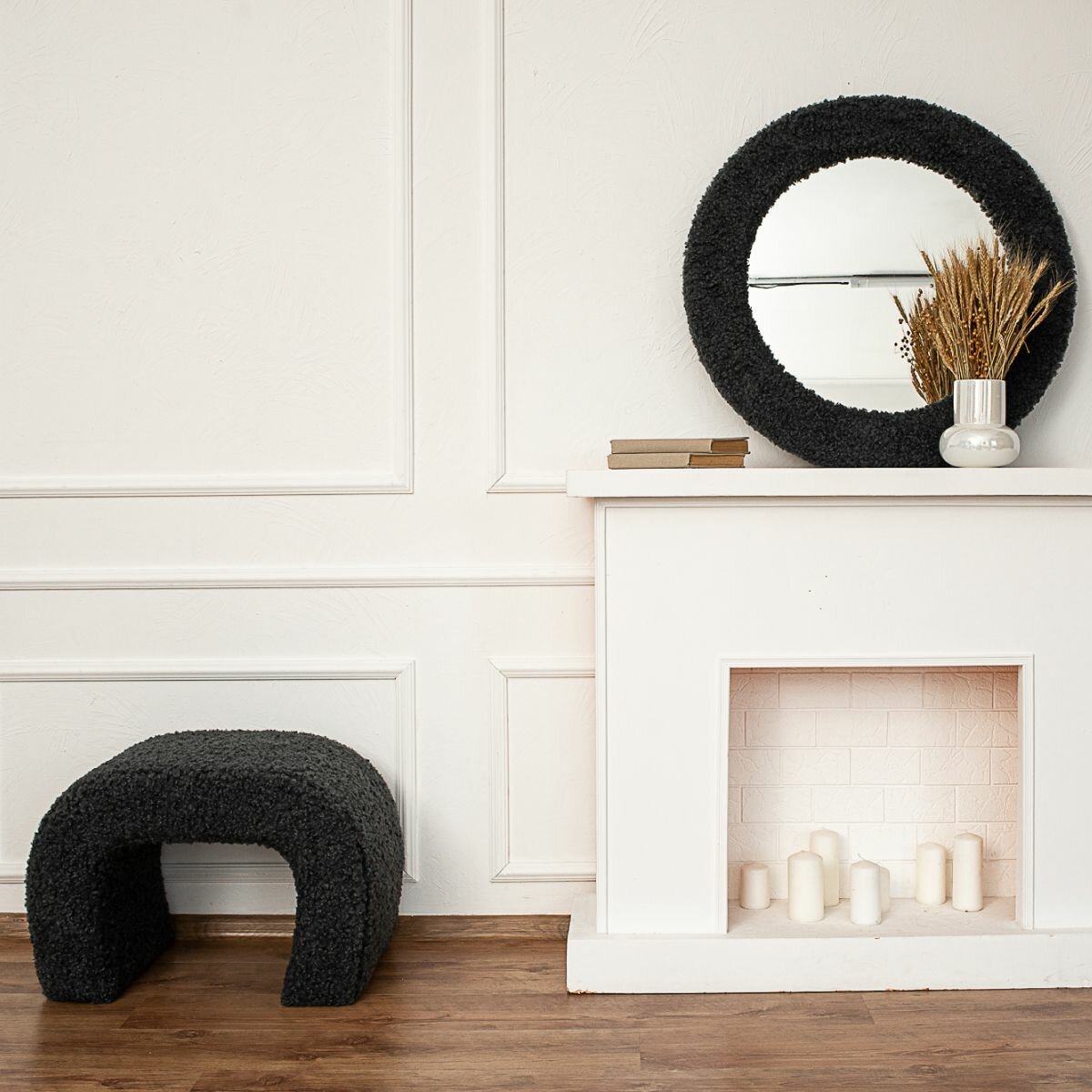 Пуф круглый Элика / пуфик в прихожую, в спальню / велюр / темно-синий