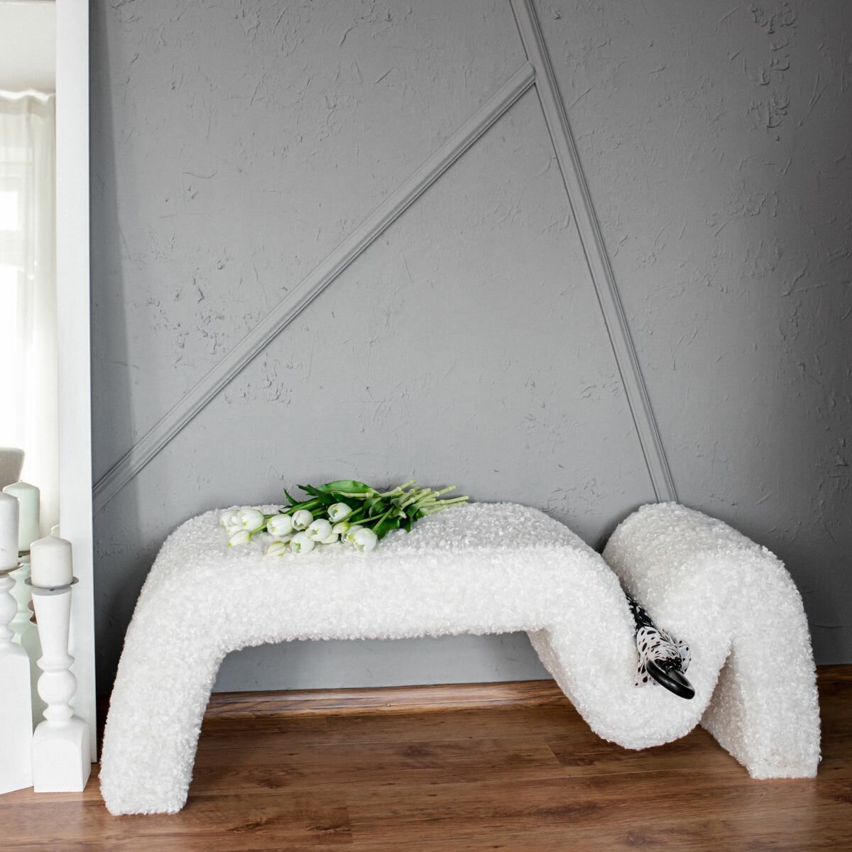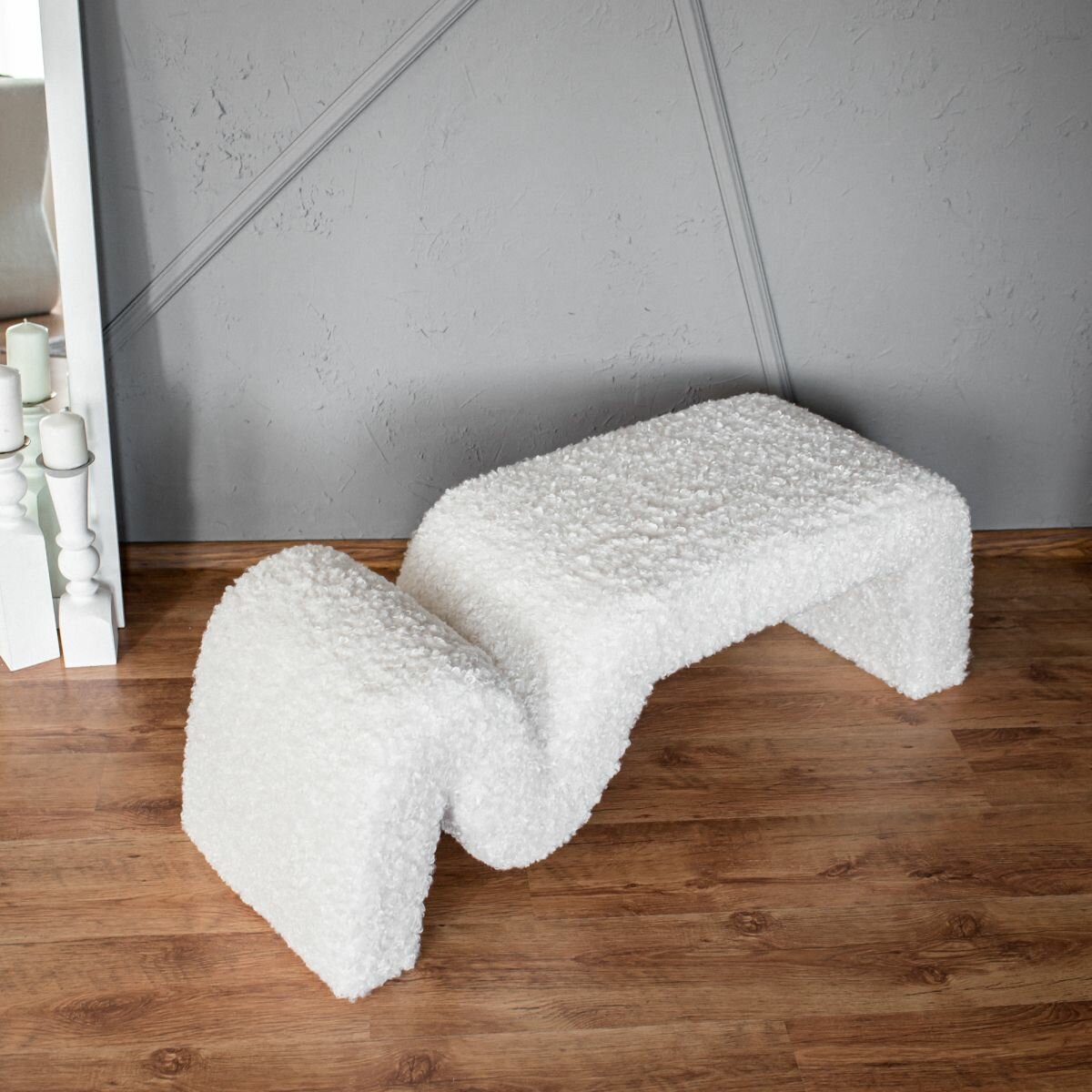 Дизайнерская мягкая банкетка пуф в прихожую, спальню и гостиную Омега прайм . Белый Бриллиант