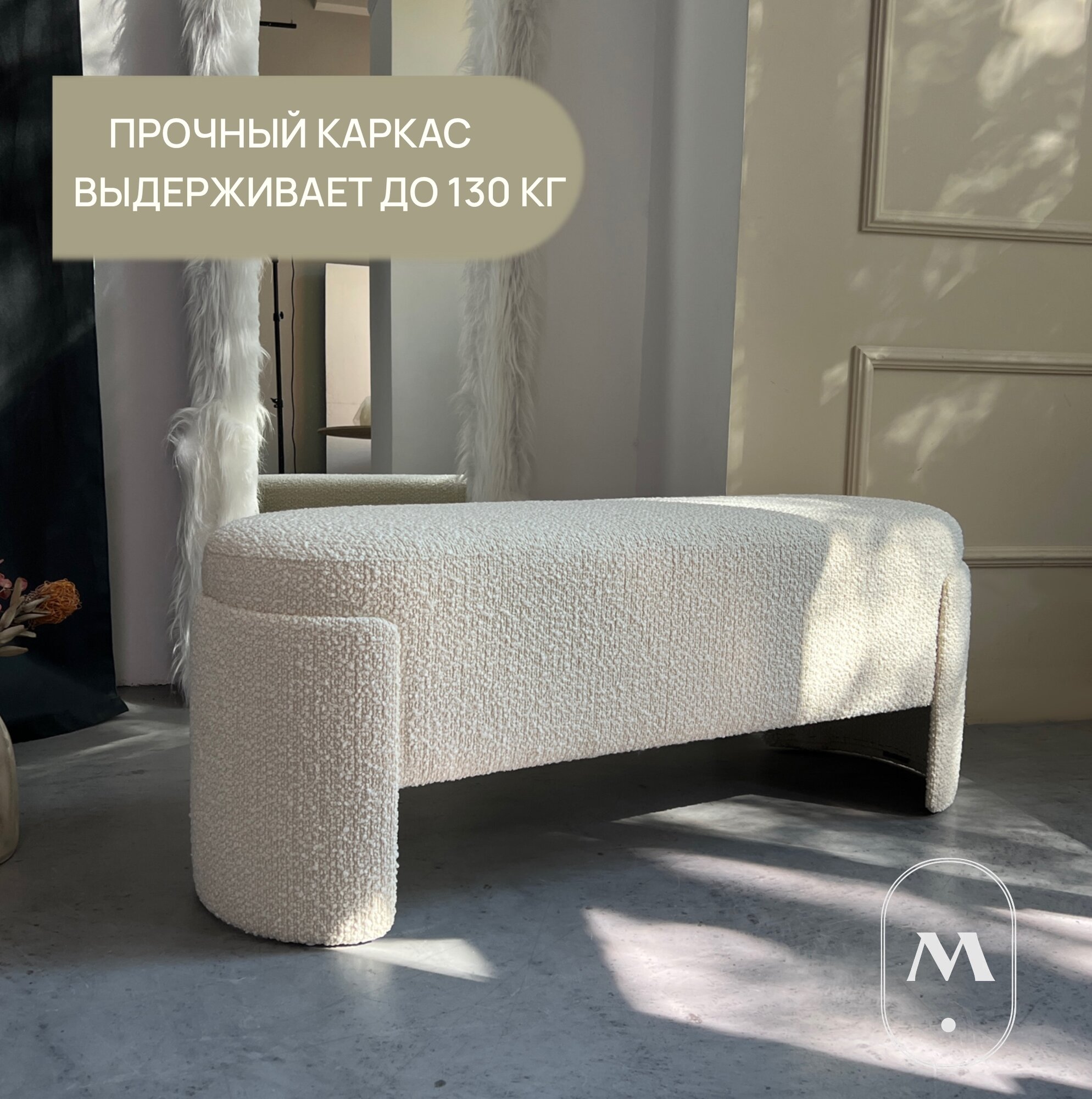 Пуфик в прихожую букле White Polly maxi 1180мм*450мм*380мм интересное: