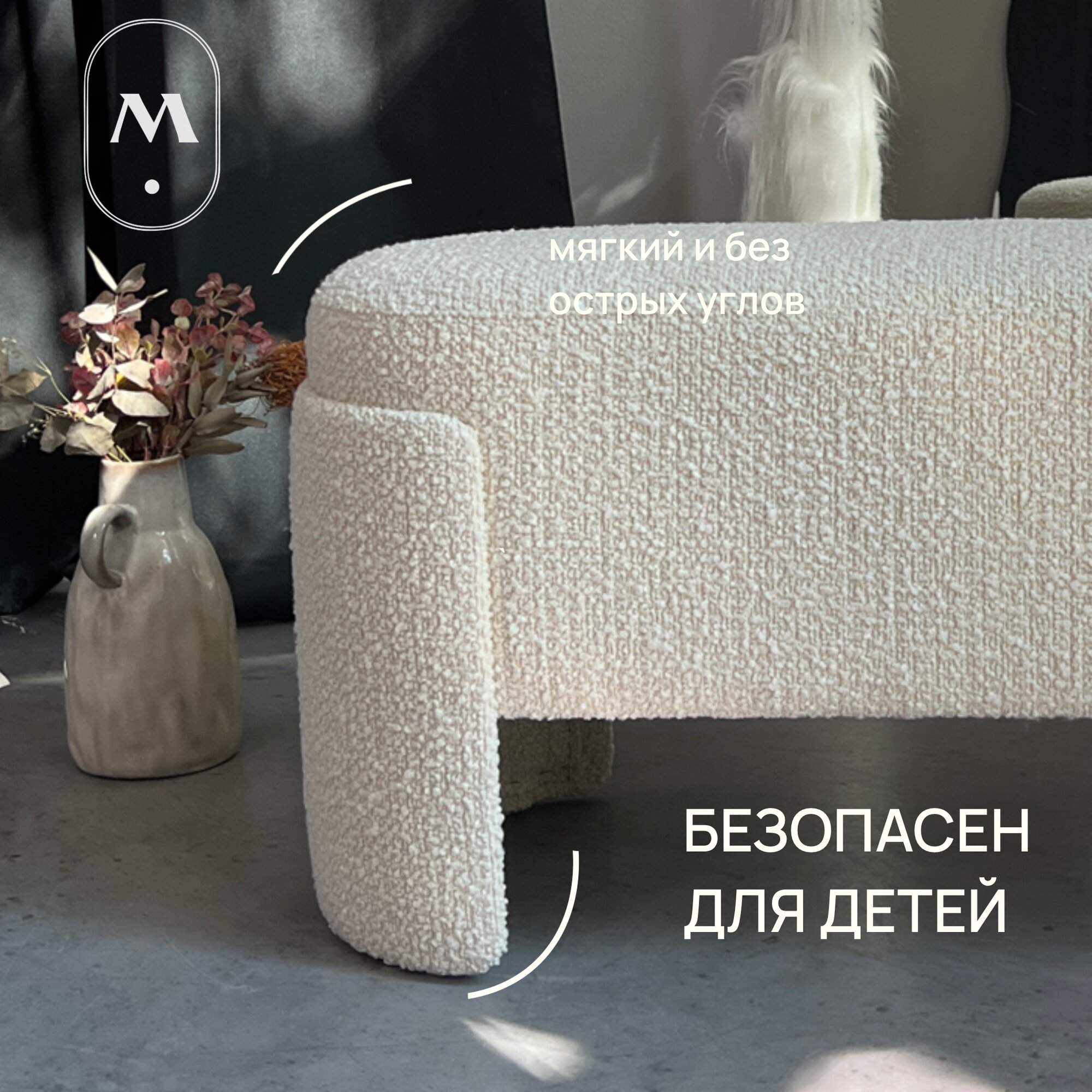 Банкетка в прихожую букле White Polly 980мм*450мм*380мм интересное: