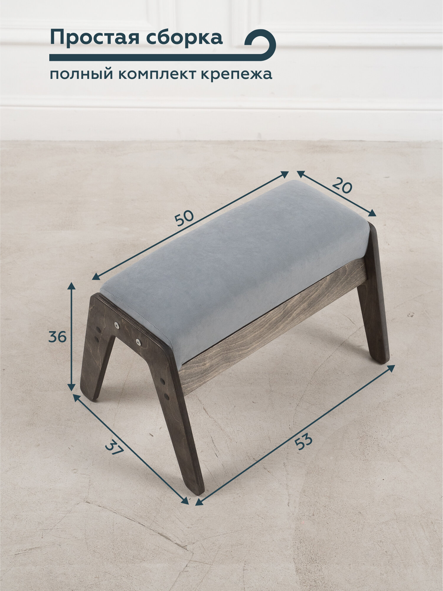 Пуф-банкетка для кресла и прихожей "РЕЛАКС", обивка синий велюр, 36х37х53 см