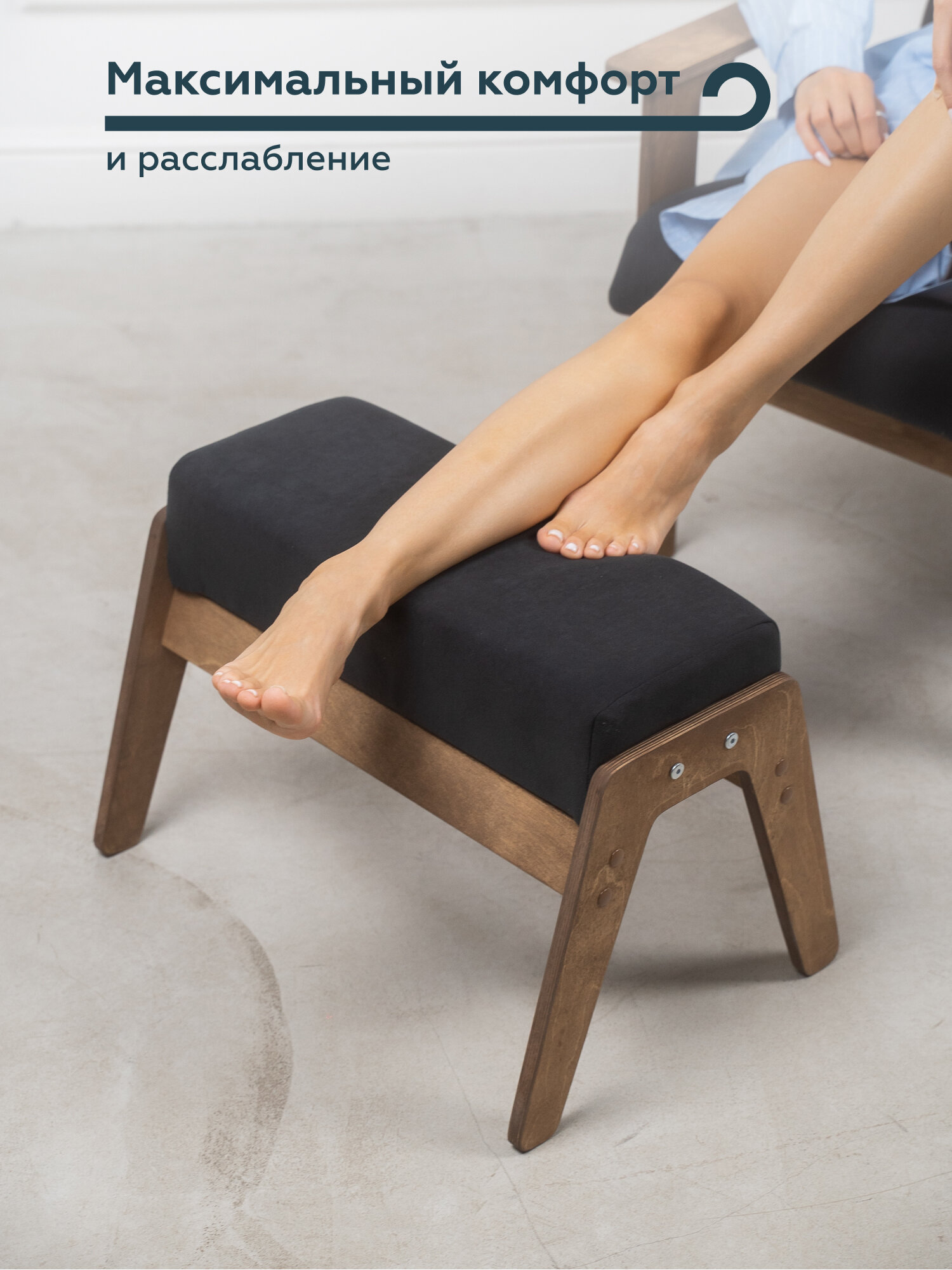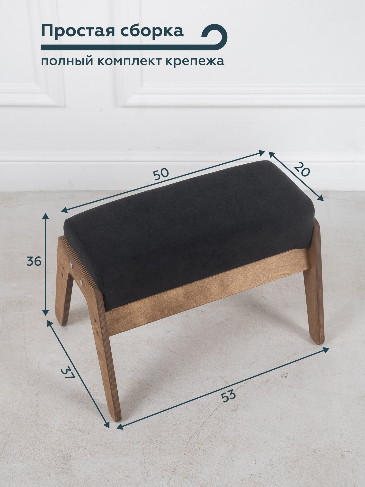 Купить Пуф-банкетка для кресла и прихожей "РЕЛАКС", обивка черный велюр, 36х37х53 см