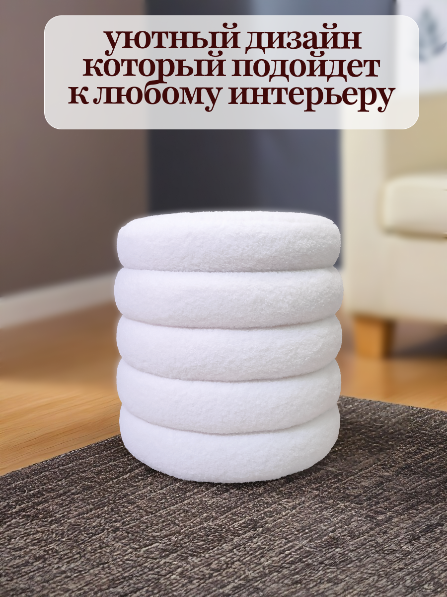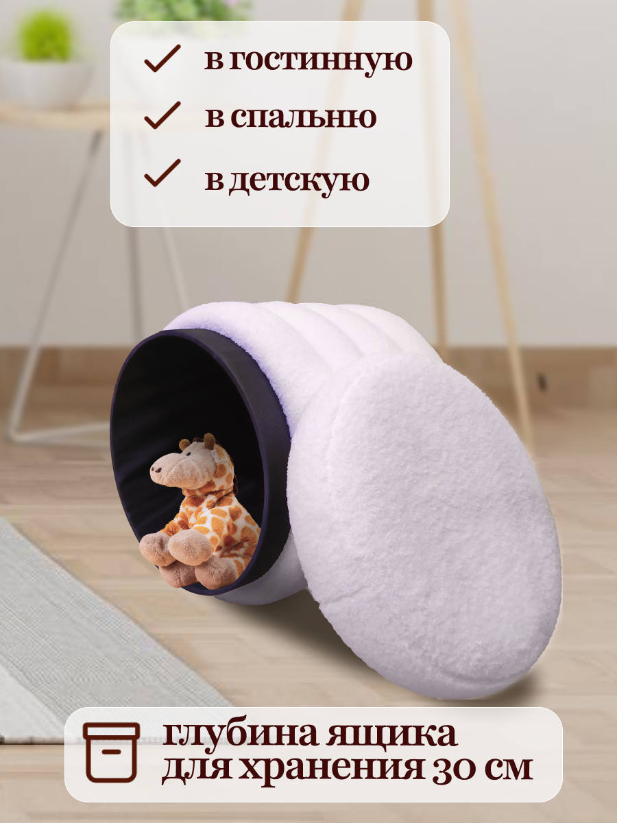 Пуфик в прихожую с ящиком для хранения 34х34х36 см, букле круглый белый / FLOWhome интересное: