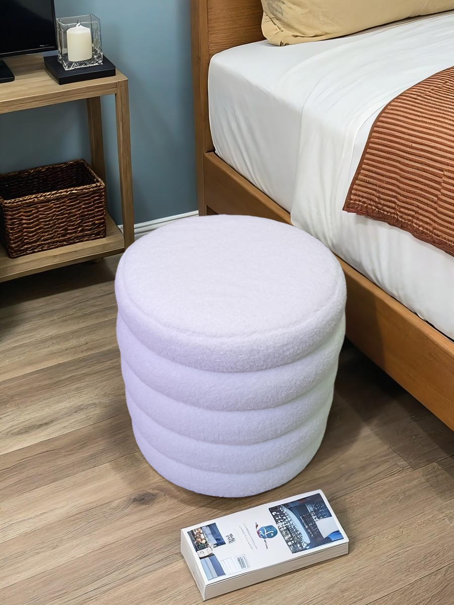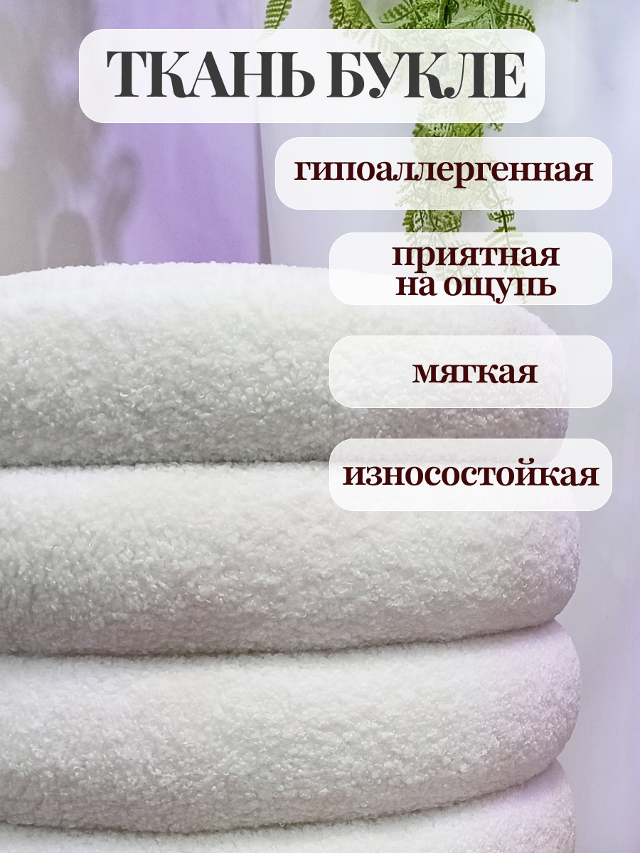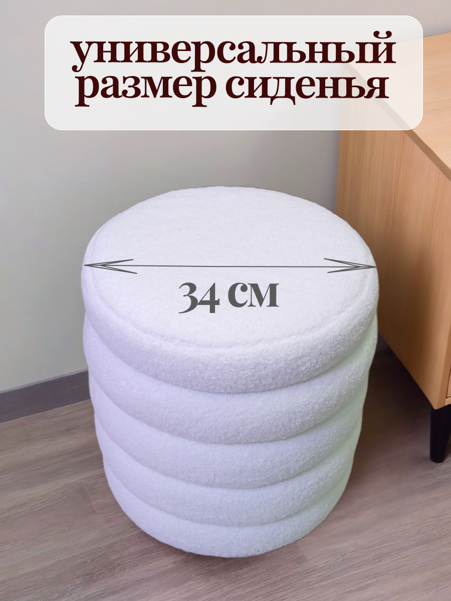 Пуфик в прихожую 34х35 см, круглый на ножках, белый, букле / Flow