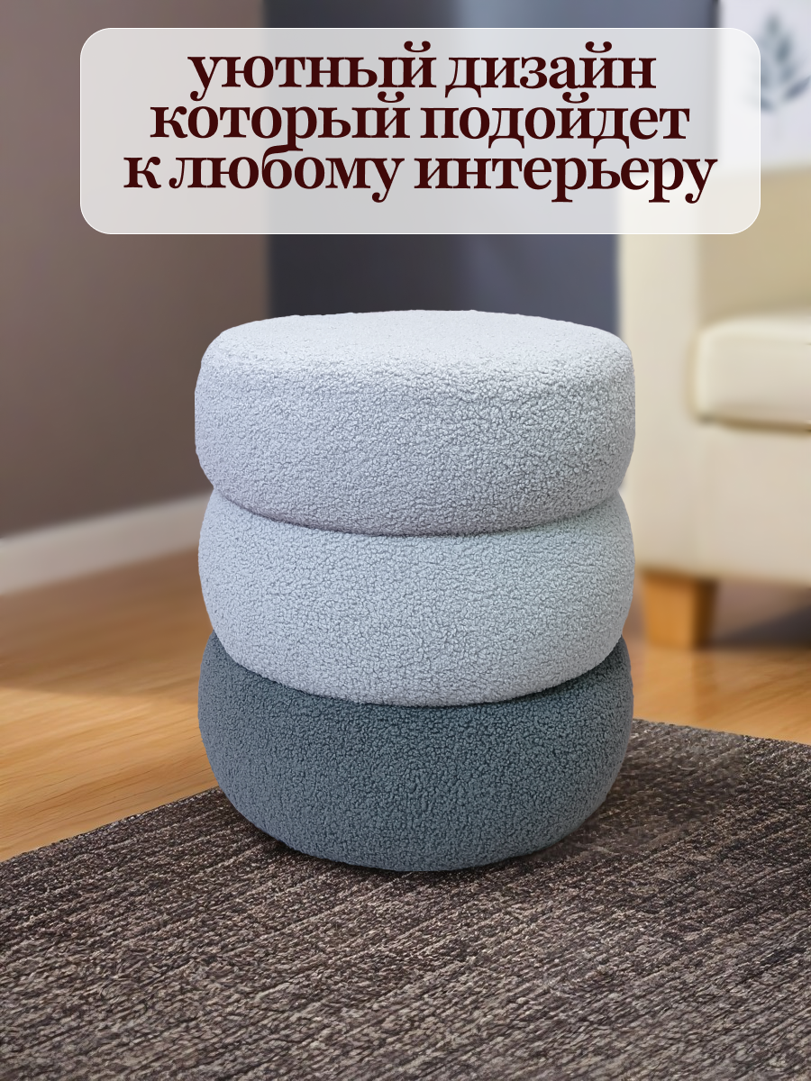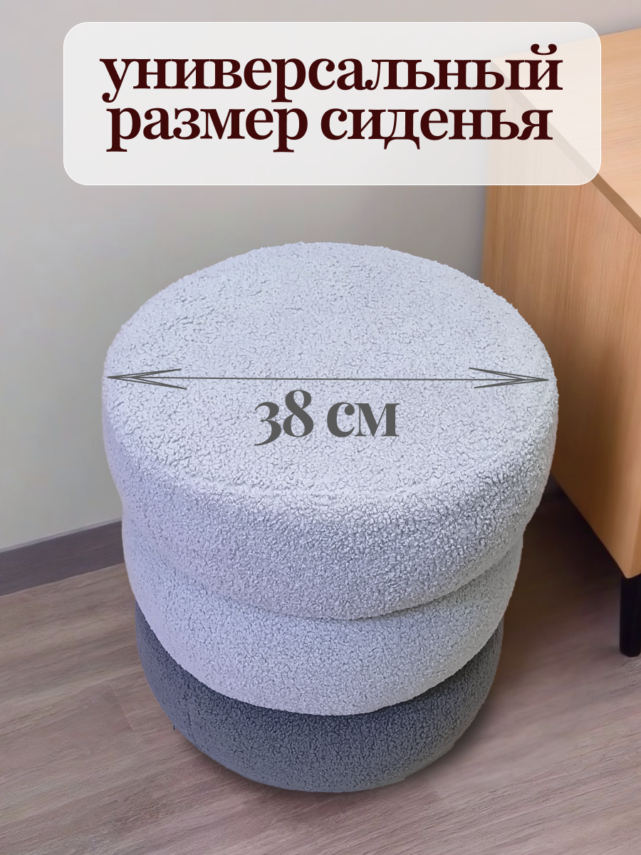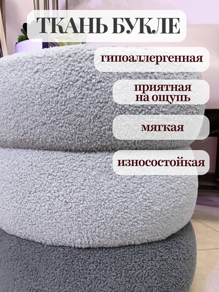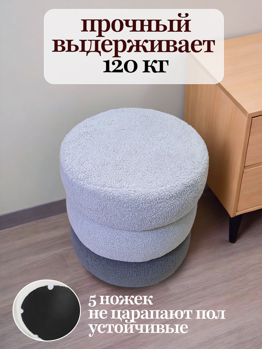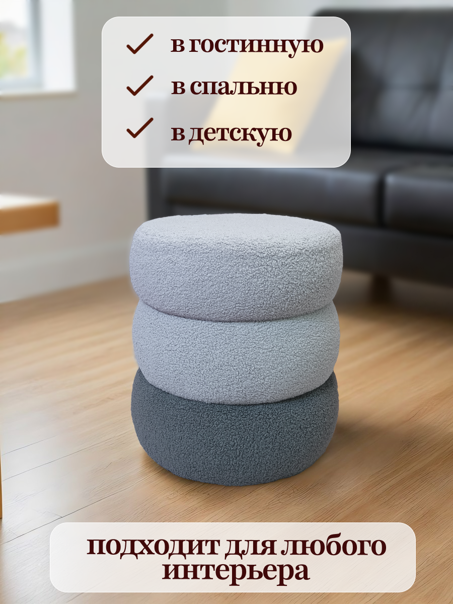 Пуфик в прихожую букле круглый 38x38х41 см, серый, универсальный / FLOWhome интересное: