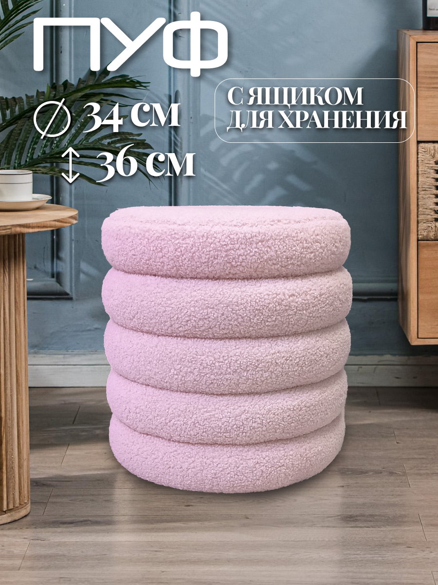 Пуфик в прихожую с ящиком для хранения 34х34х36 см, букле круглый розовый / FLOWhome интересное: