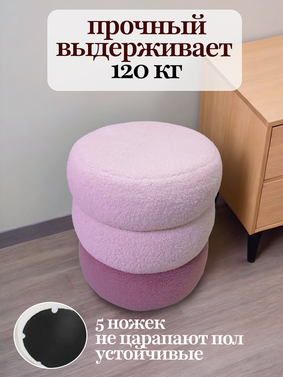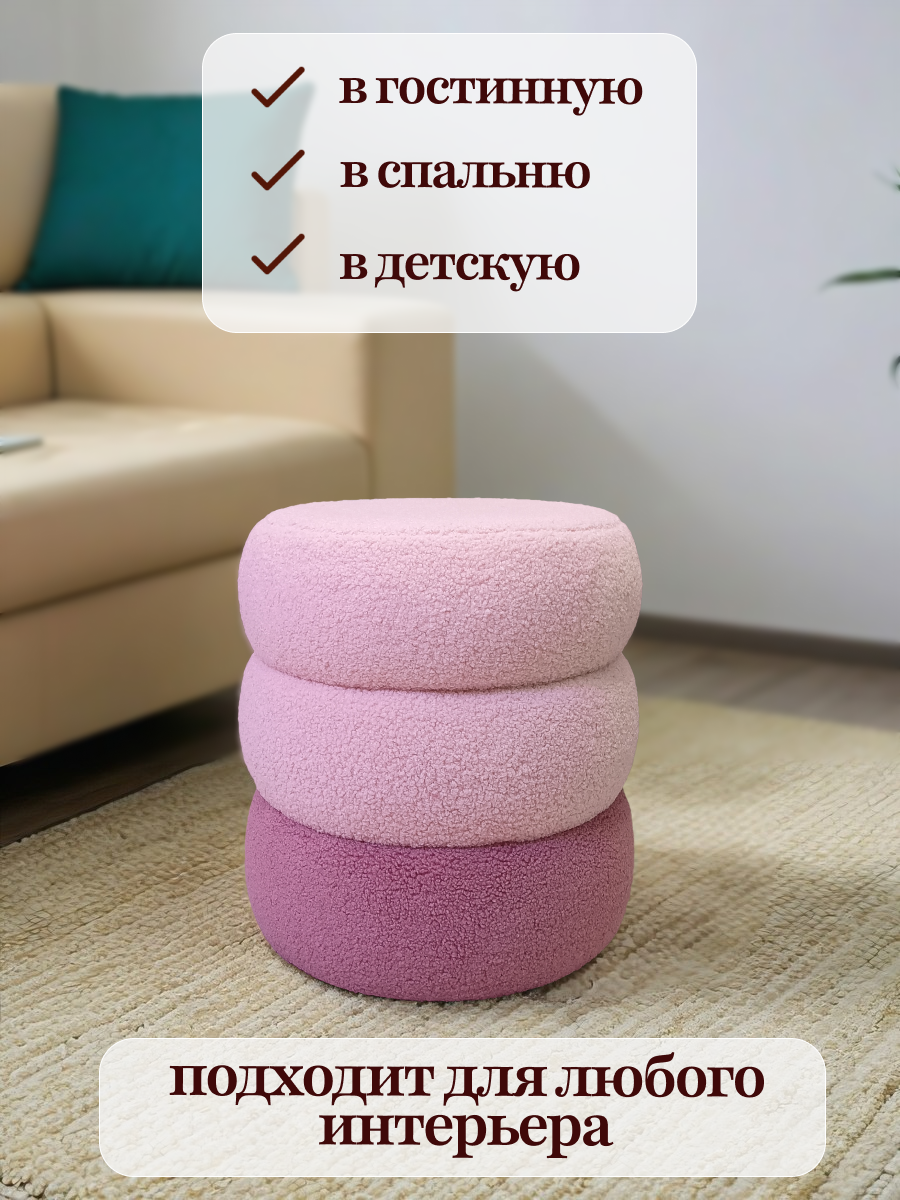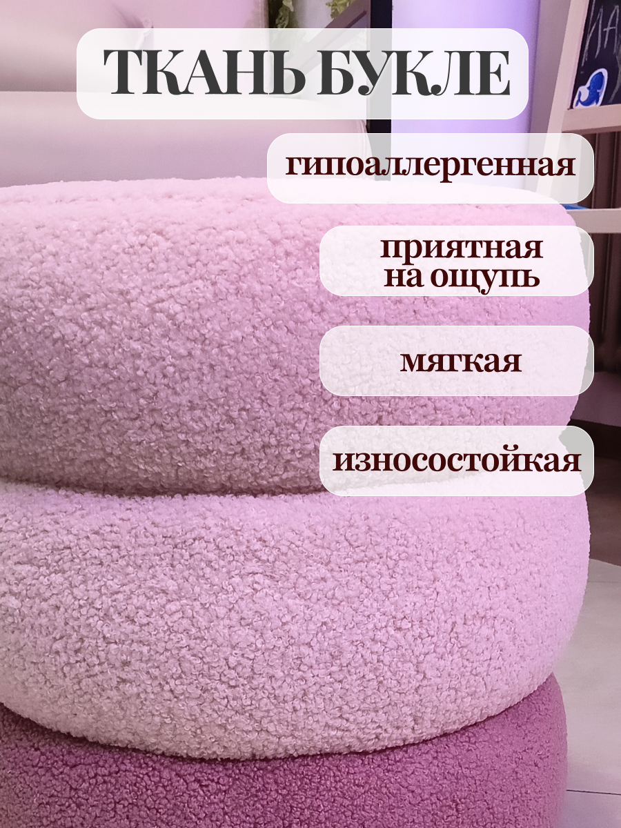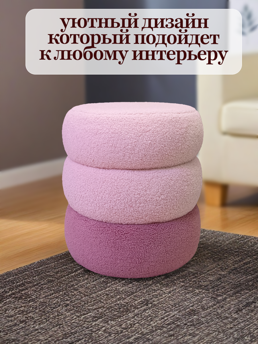 Пуфик в прихожую букле круглый 38x38х41 см, розовый, универсальный / FLOWhome интересное: