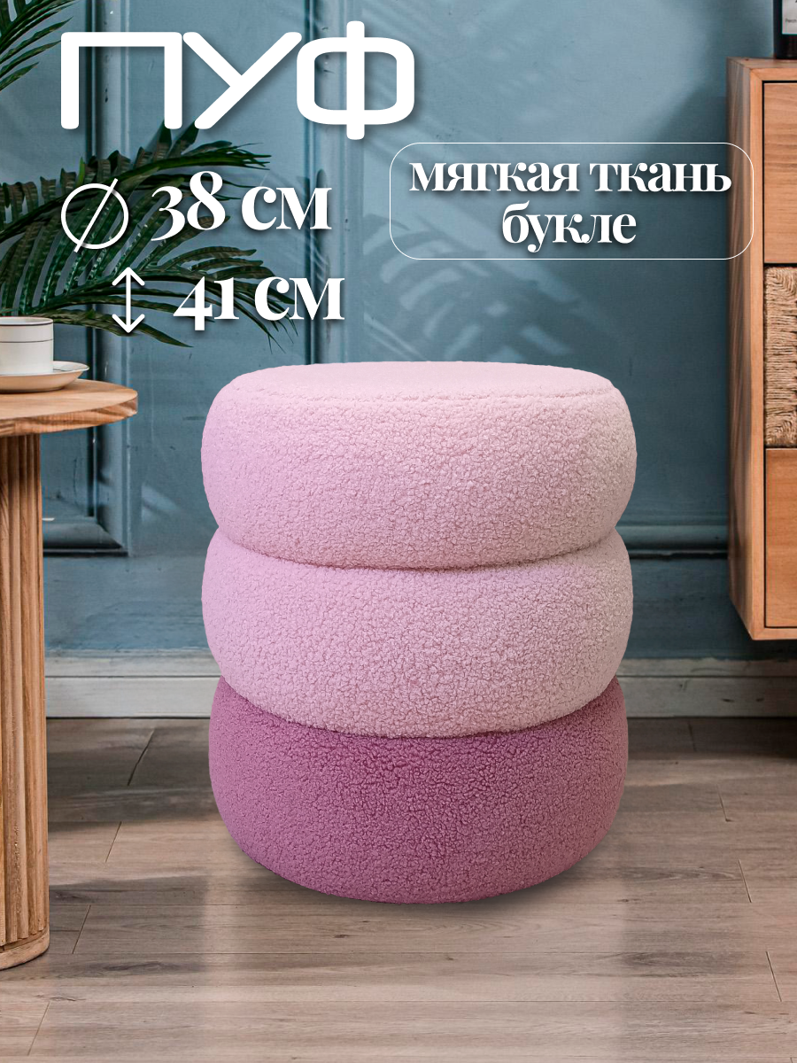 Купить Пуфик в прихожую букле круглый 38x38х41 см, розовый, универсальный / FLOWhome