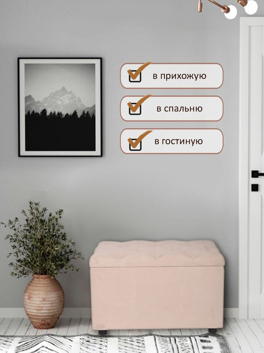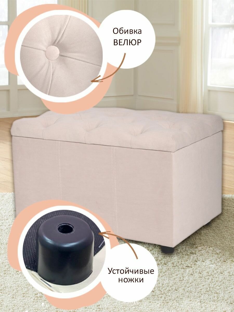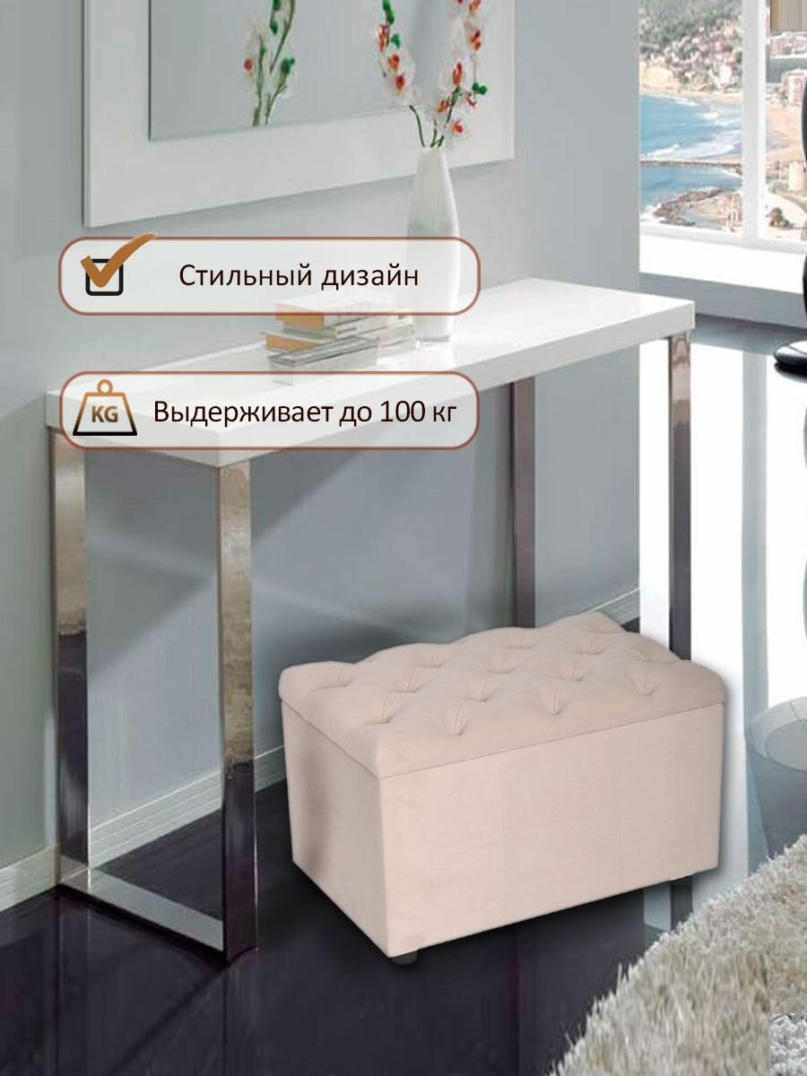 Пуф в прихожую с ящиком для хранения банкетка прямоугольная велюр Бежевый / Ультра Айвори 59.5*38.5*38 см интересное: