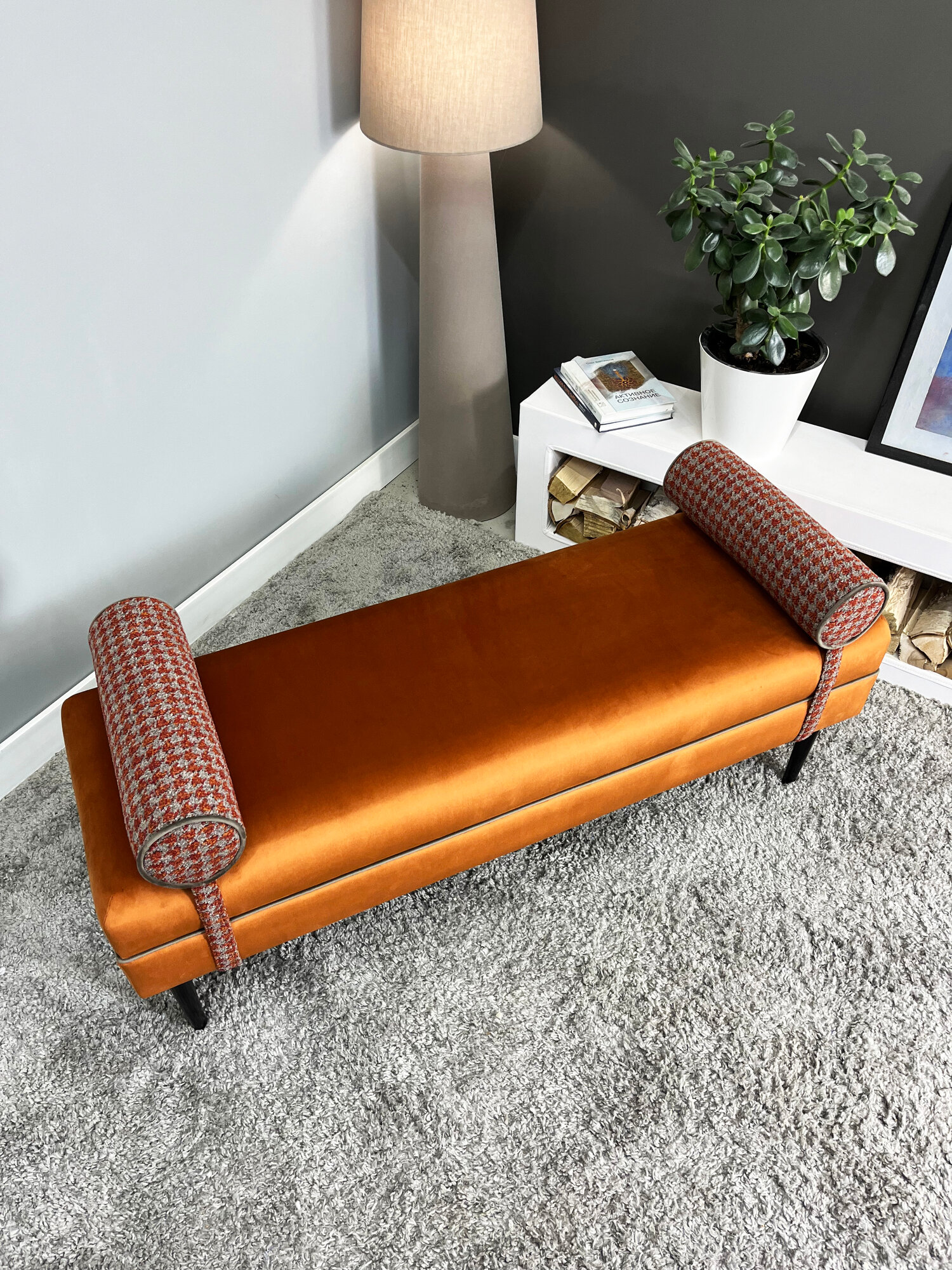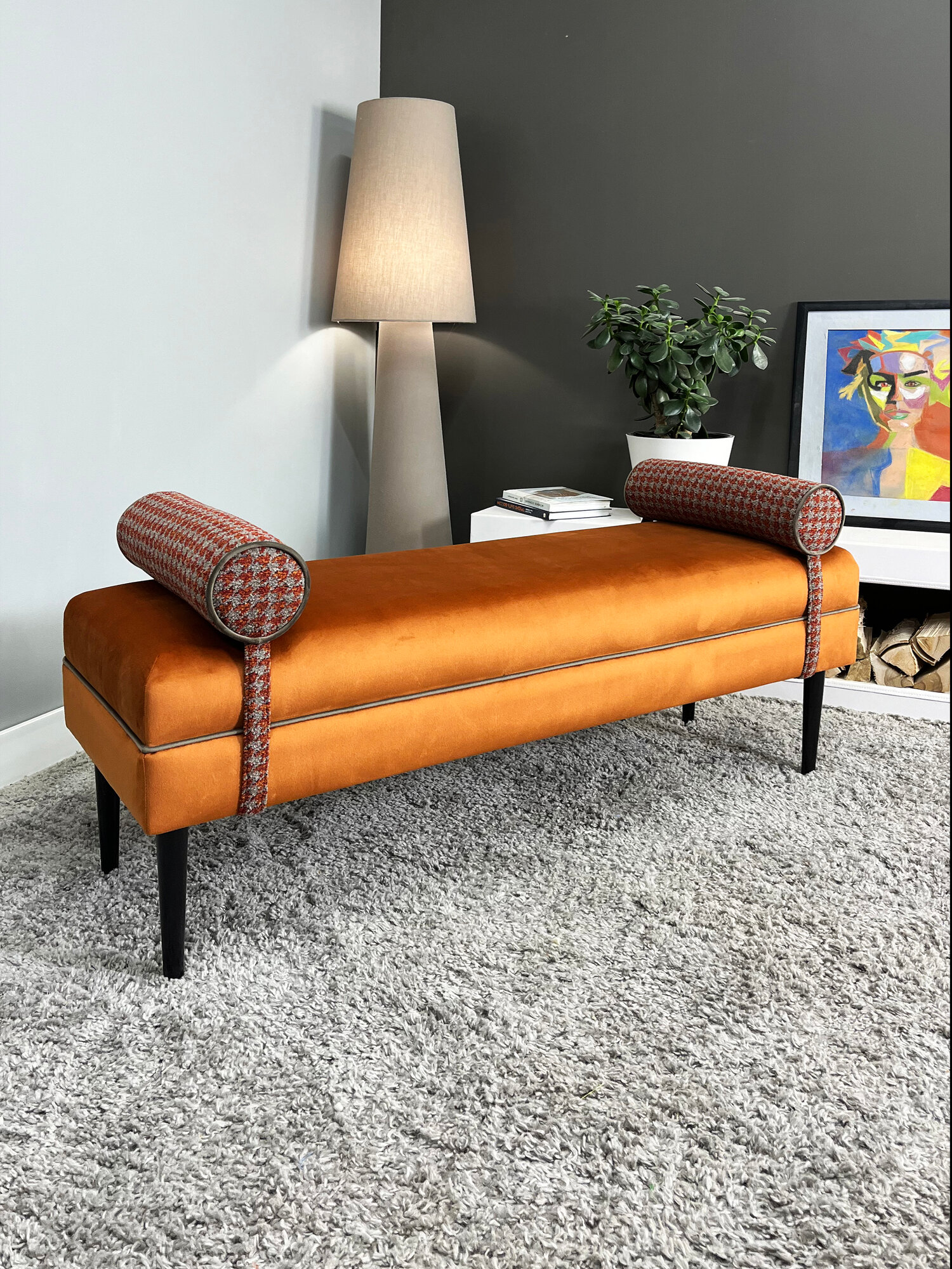 Купить Банкетка BORDADO "Samantha", мебельная фанера, велюр/шенилл, цвет оранжевый, 120 см x 41 см x 54 см