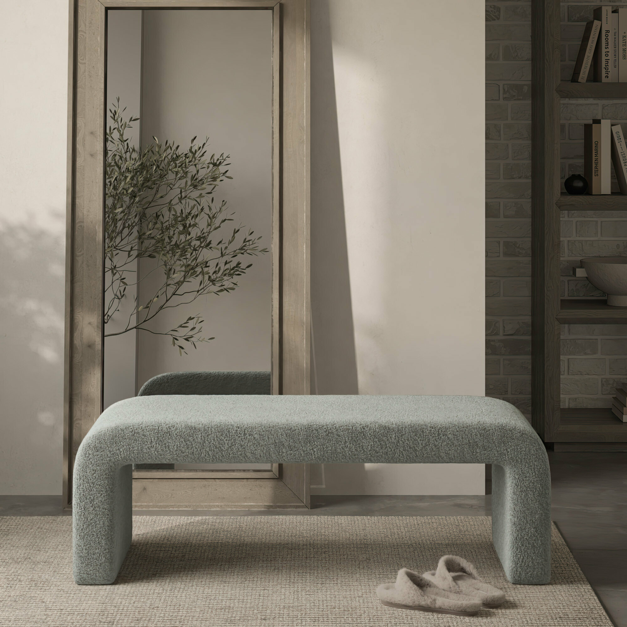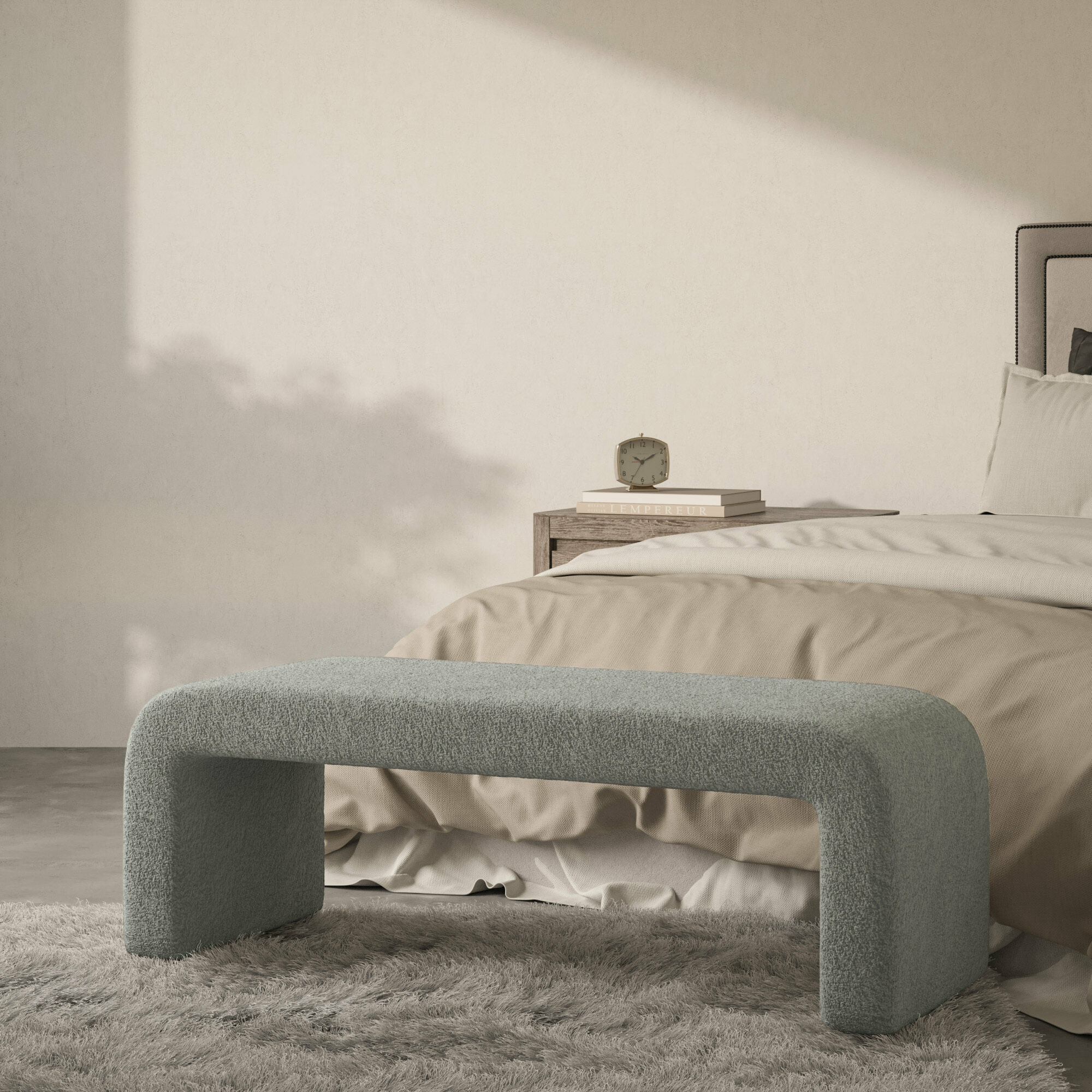 Банкетка OCTAVIA-2 пуф в прихожую, спальню, гостиную, детскую, прикроватная прямоугольная, мягкая, мебель минимализм для квартиры дачи дома, букле