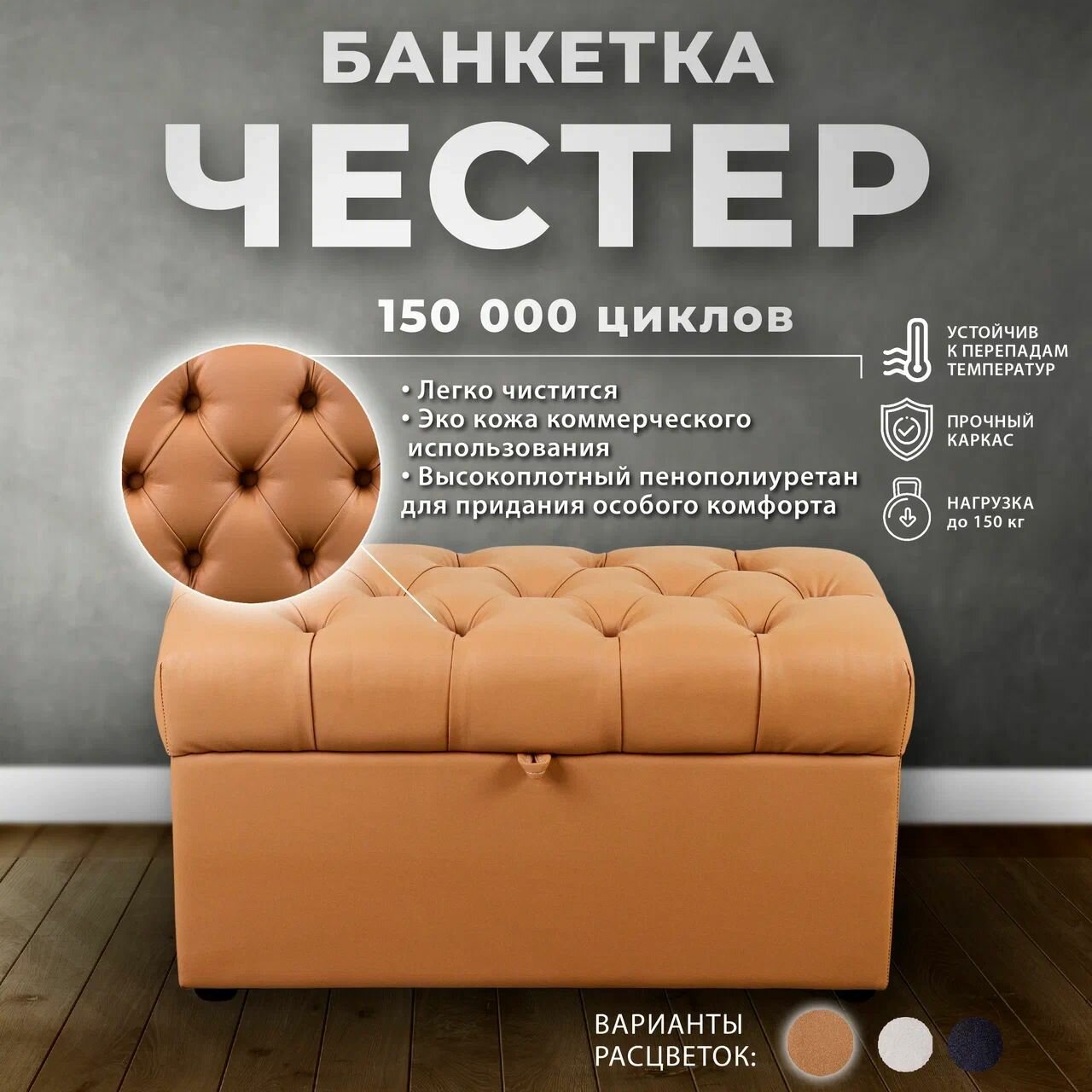 Банкетка Честер с ящиком в каретной стяжке интересное: