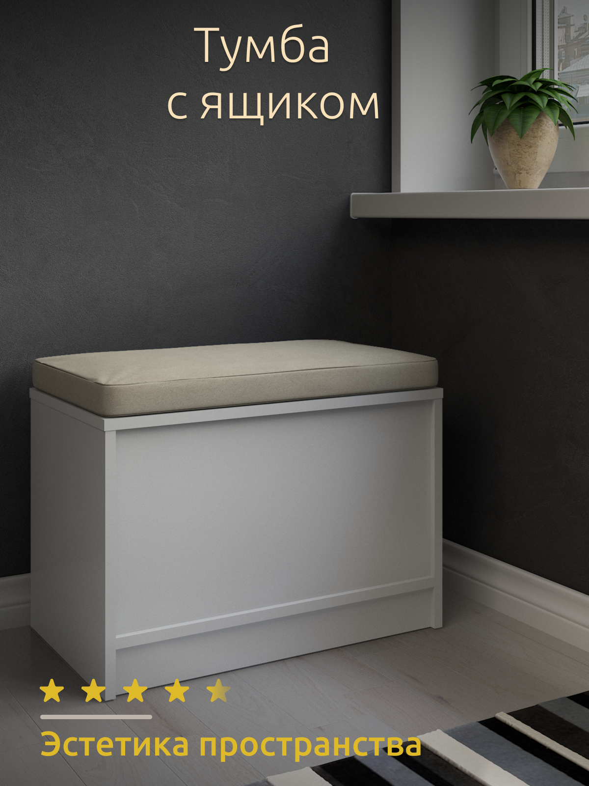 Банкетка с ящиком для хранения, ЛДСП, цвет белый шагрень, 60 см x 35 см x 40см интересное: