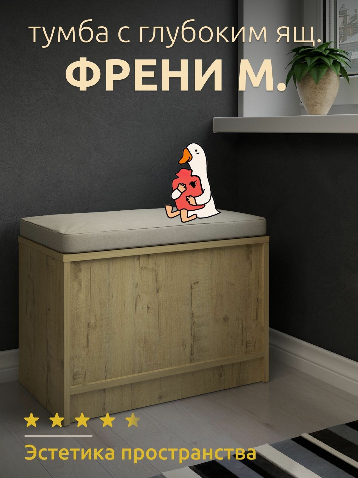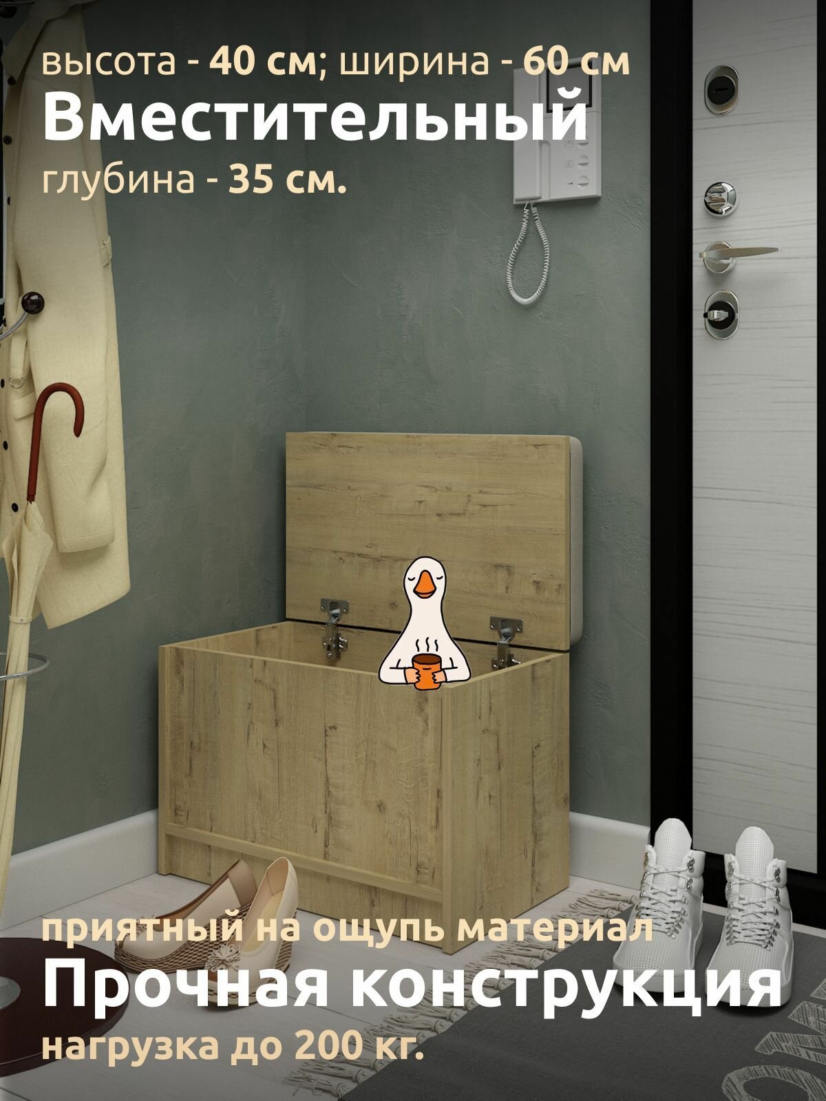 Банкетка с ящиком хранения 60см x 35см x 40см, цвет дуб бунратти интересное: