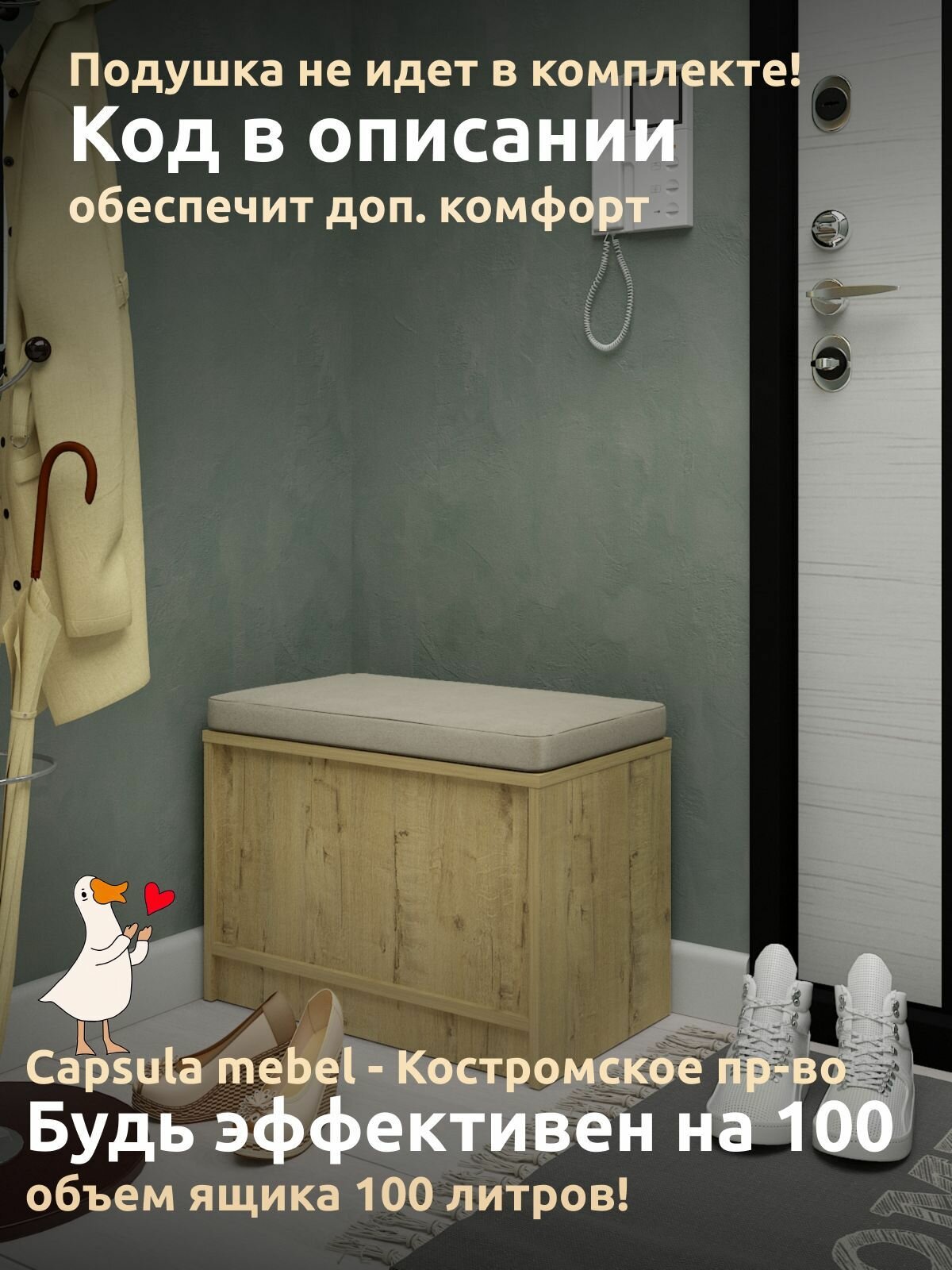 Банкетка DECORTA "Pititi", для прихожей, с ящиком, мебельный гобелен, 62х34х45 см