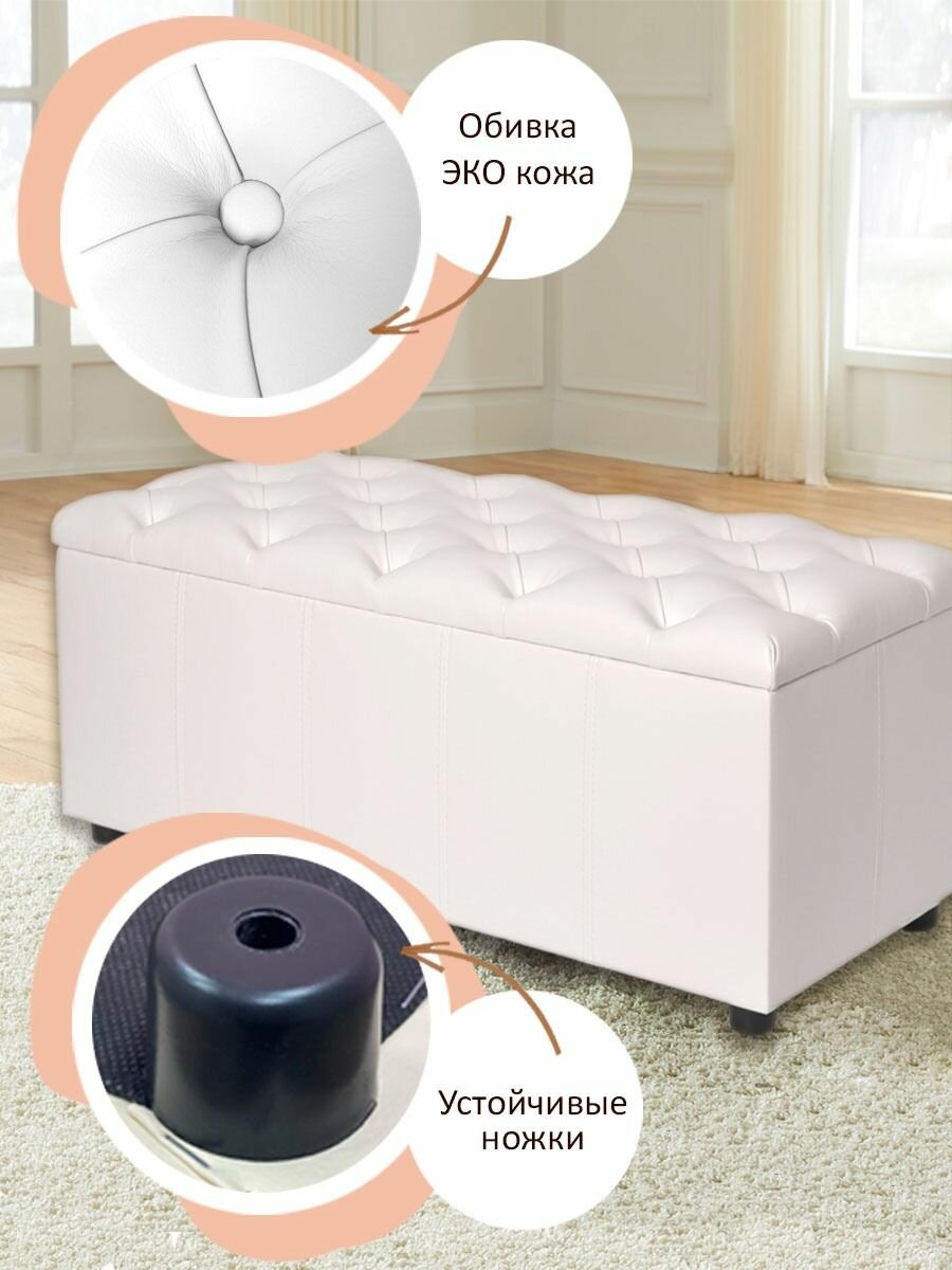 Пуф в прихожую с ящиком для хранения прямоугольный из экокожи 89.5*38.5*38 интересное: