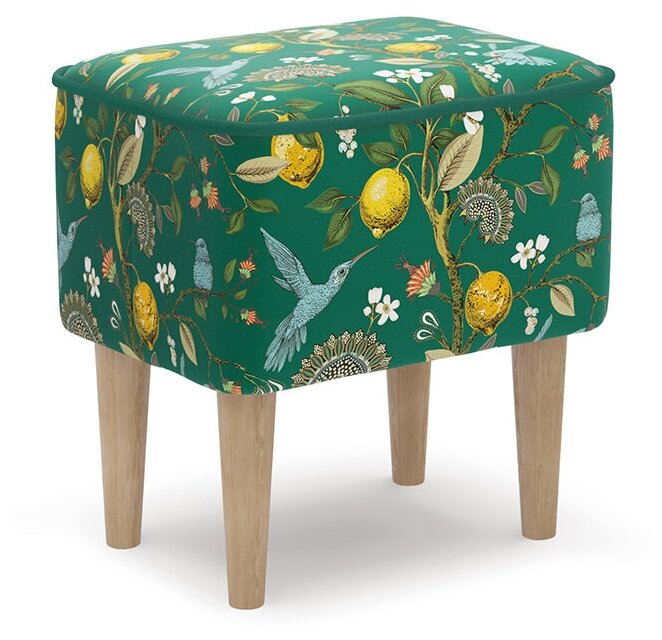 Купить Пуф одос принт Лимоны зеленый, микровелюр , 42х42х32 (ШхВхГ)