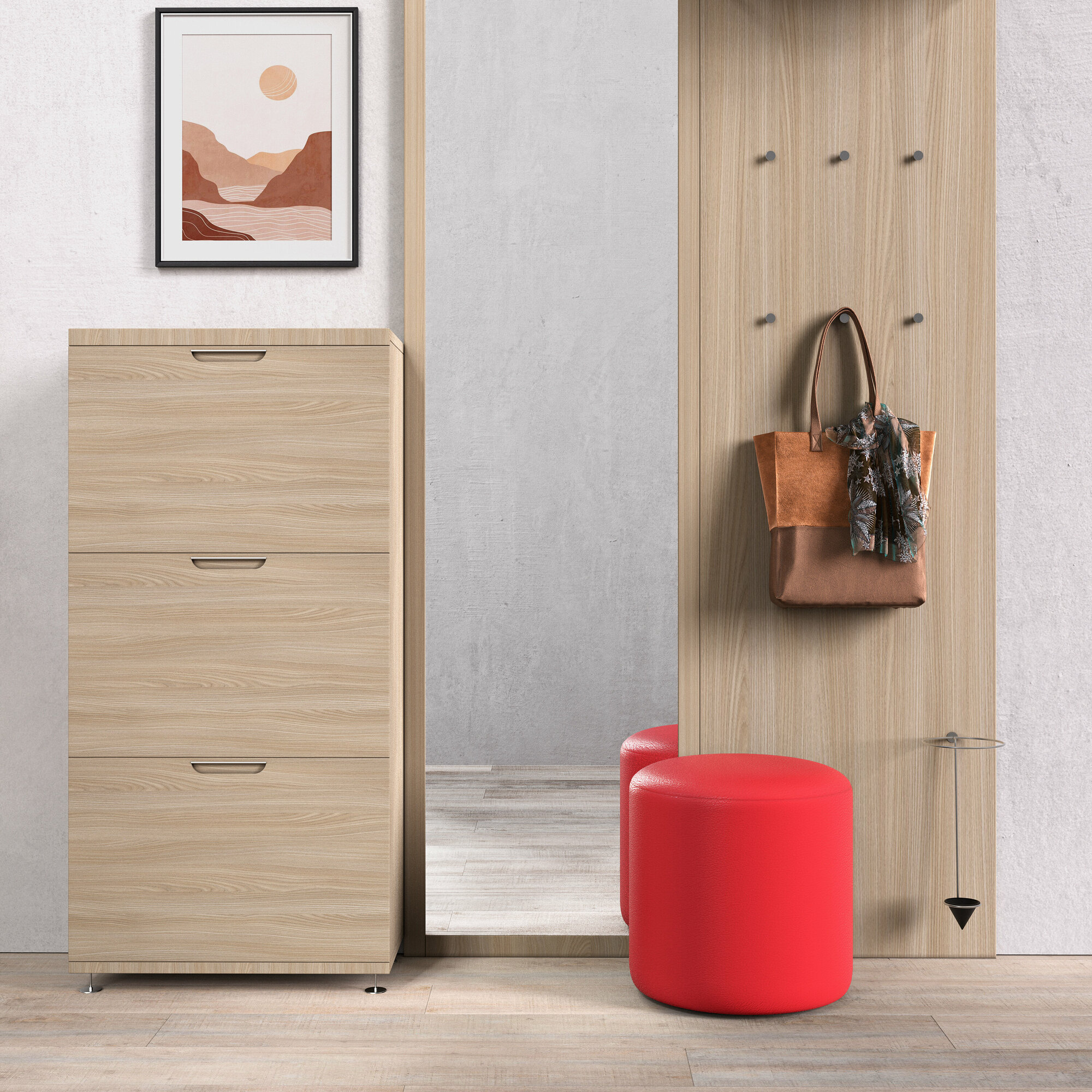 Обувница для прихожей с сиденьем закрытая / Пуф мягкий из экокожи / Банкетка в прихожую Бежевый 59.5*38.5*38