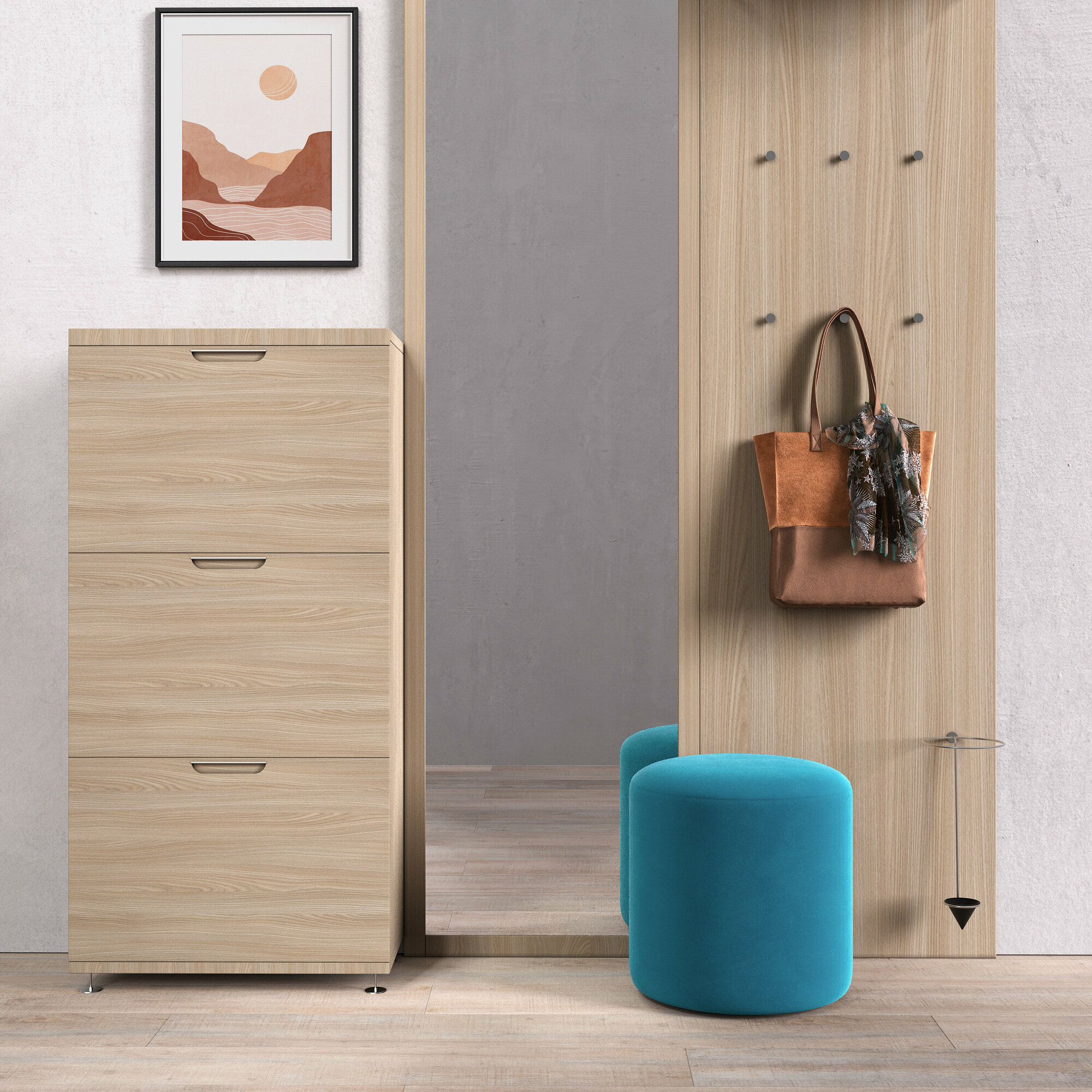 Обувница для прихожей с сиденьем закрытая / Пуф мягкий из экокожи / Банкетка в прихожую Бежевый 59.5*38.5*38