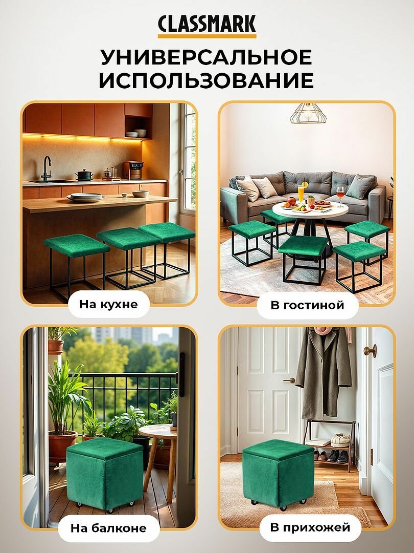 Пуф трансформер 5 в 1 Classmark велюр, 38х34х34 см, пуфик в прихожую и спальню, квадратный, зеленый интересное: