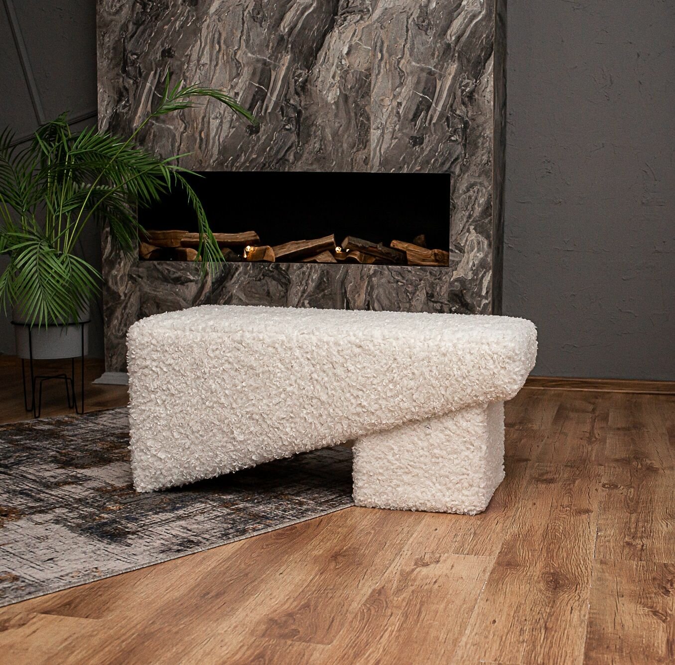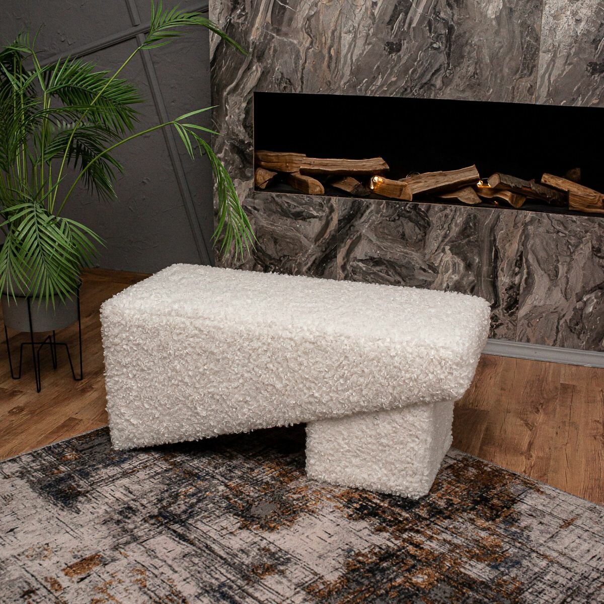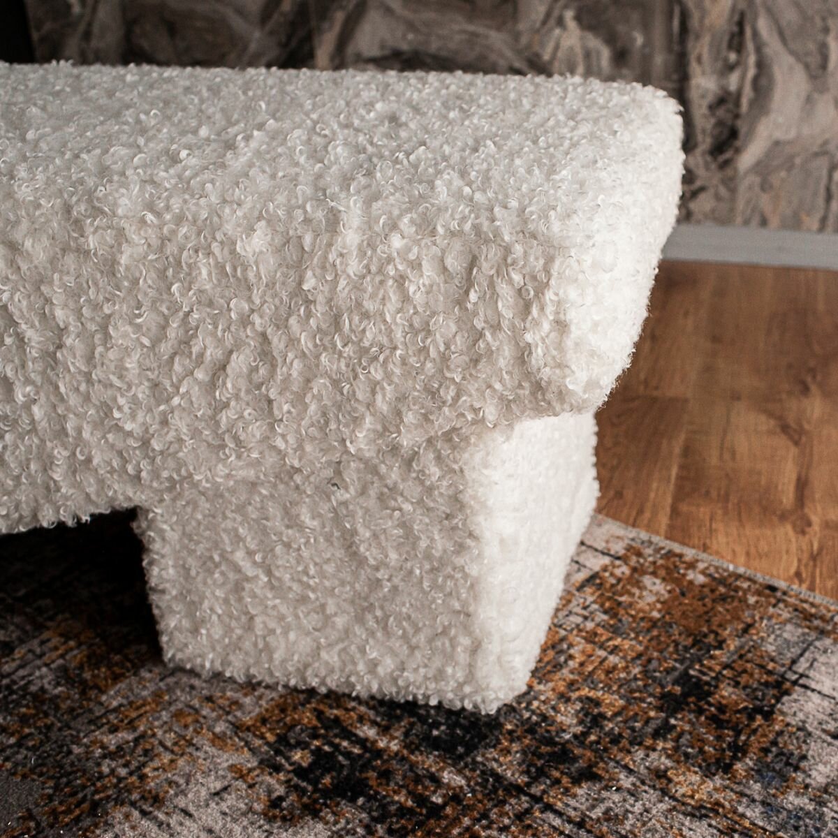 Дизайнерская мягкая банкетка пуф в прихожую, спальню и гостиную Гамма Лофт Рыжий . Белый Бриллиант