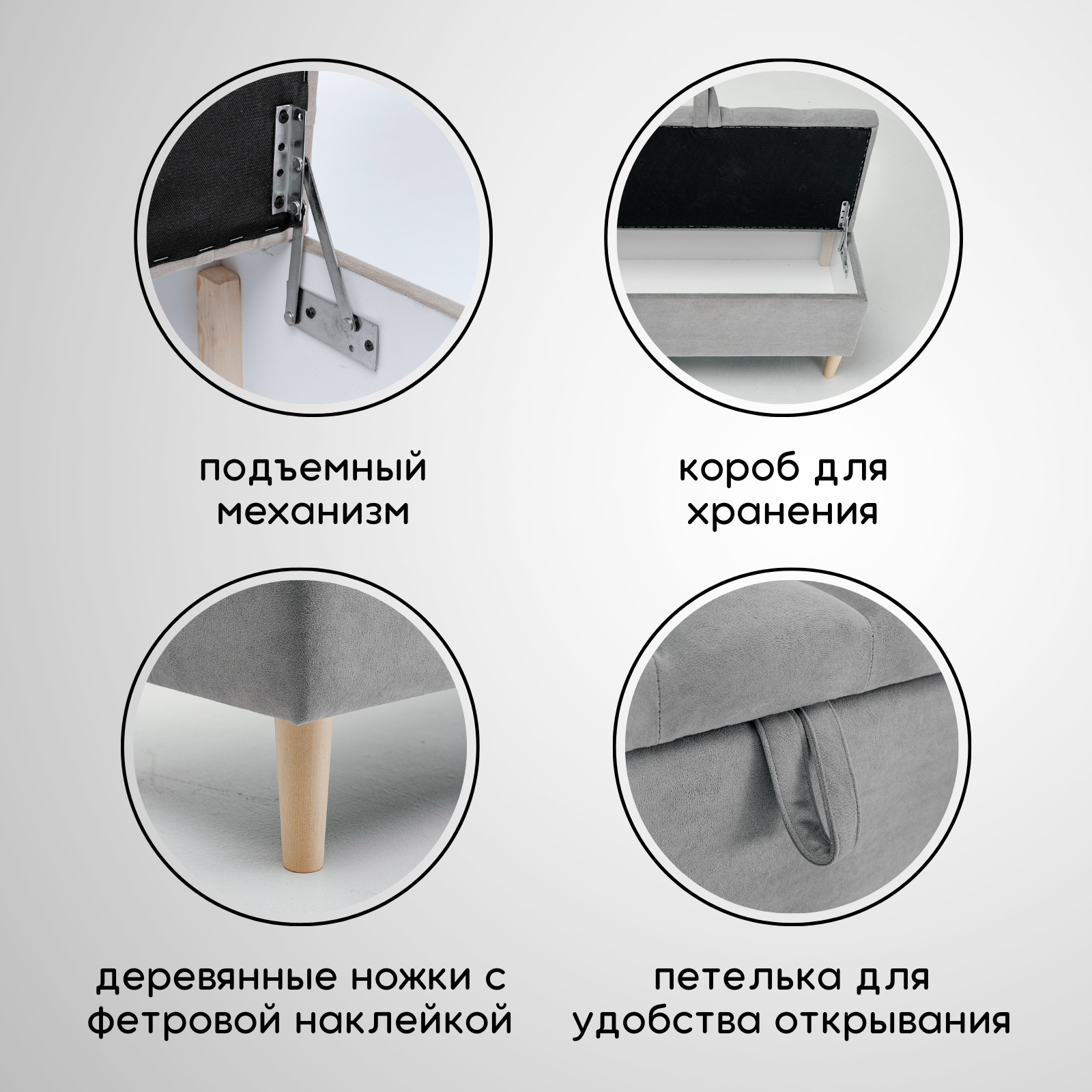 СохранитьПуф с коробом для хранения на ножках 111Lux Brendoss, пуфик с ящиком, банкетка, цвет серый, износостойкий велюр интересное: