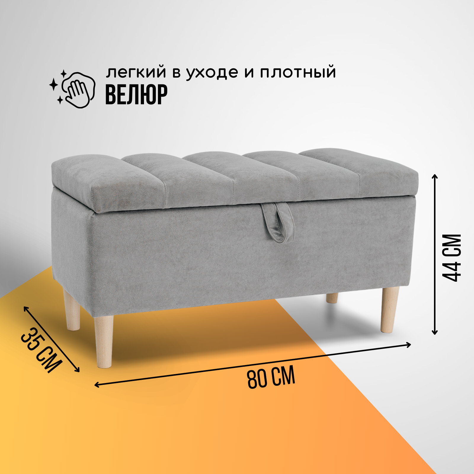 Купить Пуф с коробом для хранения на ножках 111Lux Brendoss, пуфик с ящиком, банкетка, цвет серый, износостойкий велюр