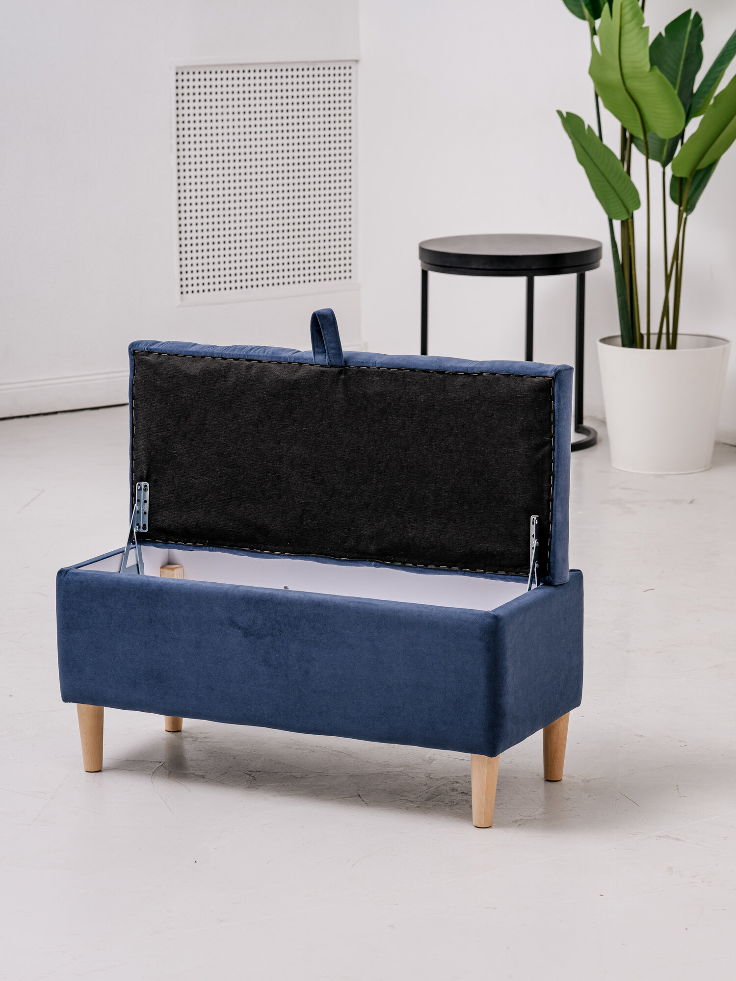 Купить Пуф с коробом для хранения на ножках 111Lux Brendoss, пуфик с ящиком, банкетка, цвет синий, износостойкий велюр