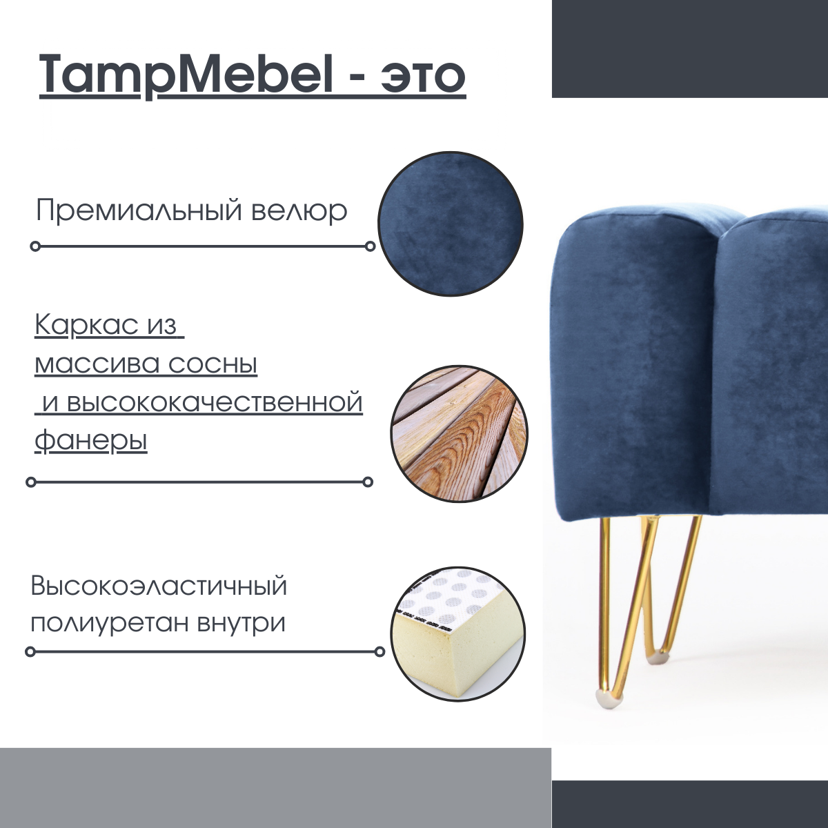 СохранитьБанкетка в спальню, пуфик для прихожей "Santorini" с треугольными ножками, ткань велюр, синяя интересное:
