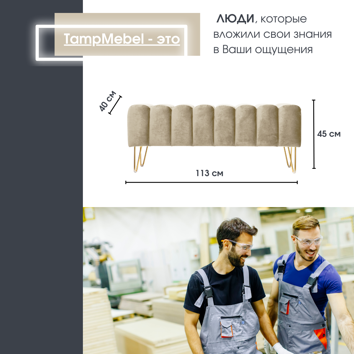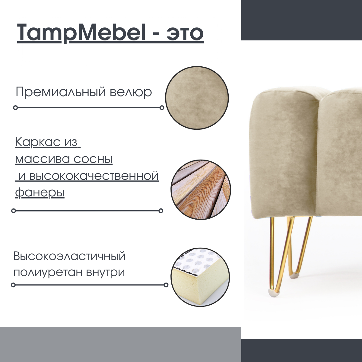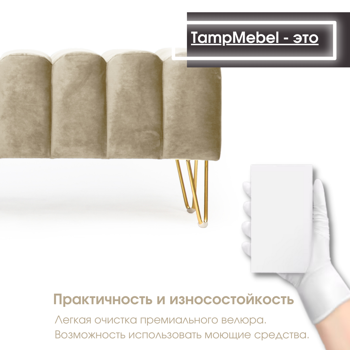 СохранитьБанкетка в спальню, пуфик для прихожей "Santorini" с треугольными ножками, ткань велюр, светло-бежевая интересное: