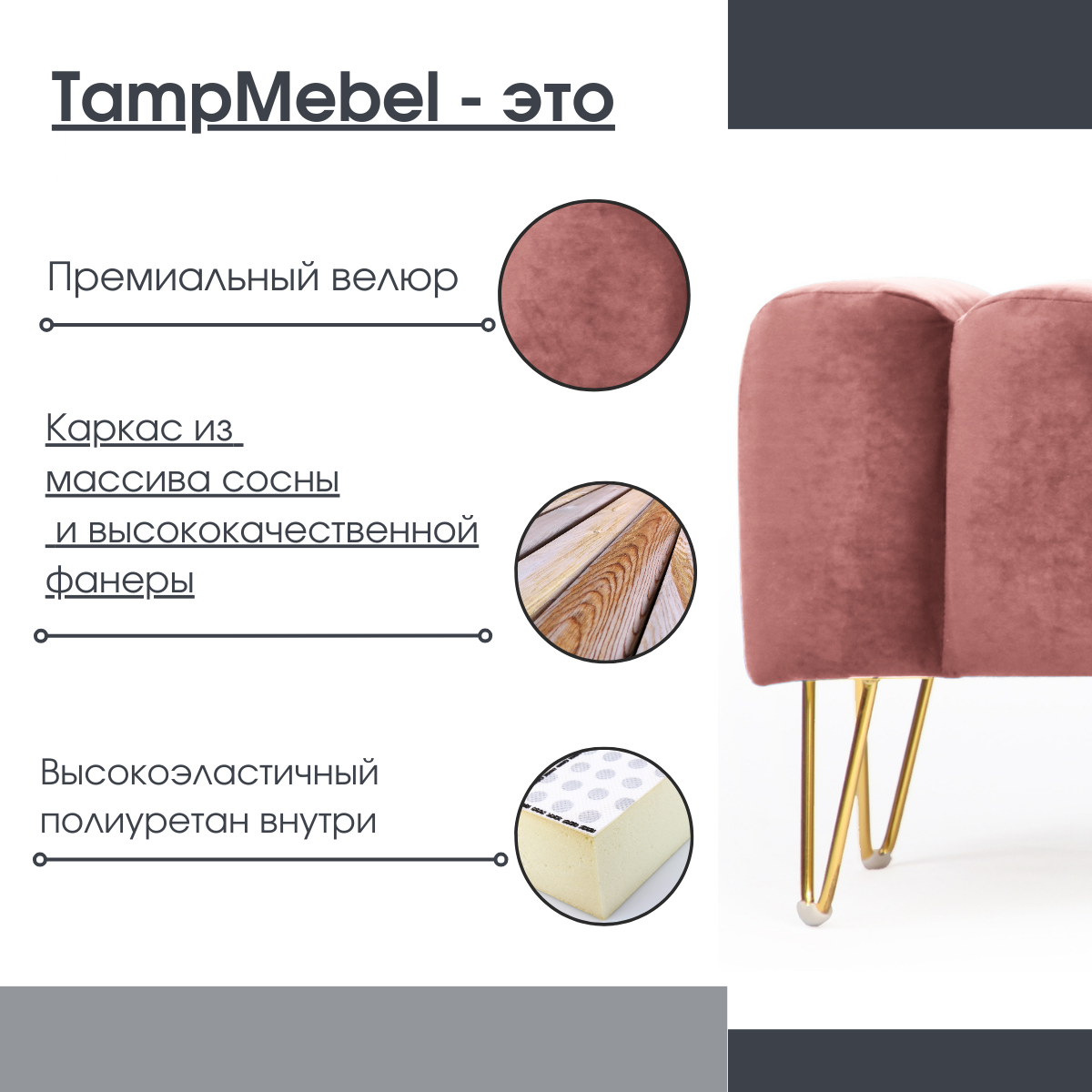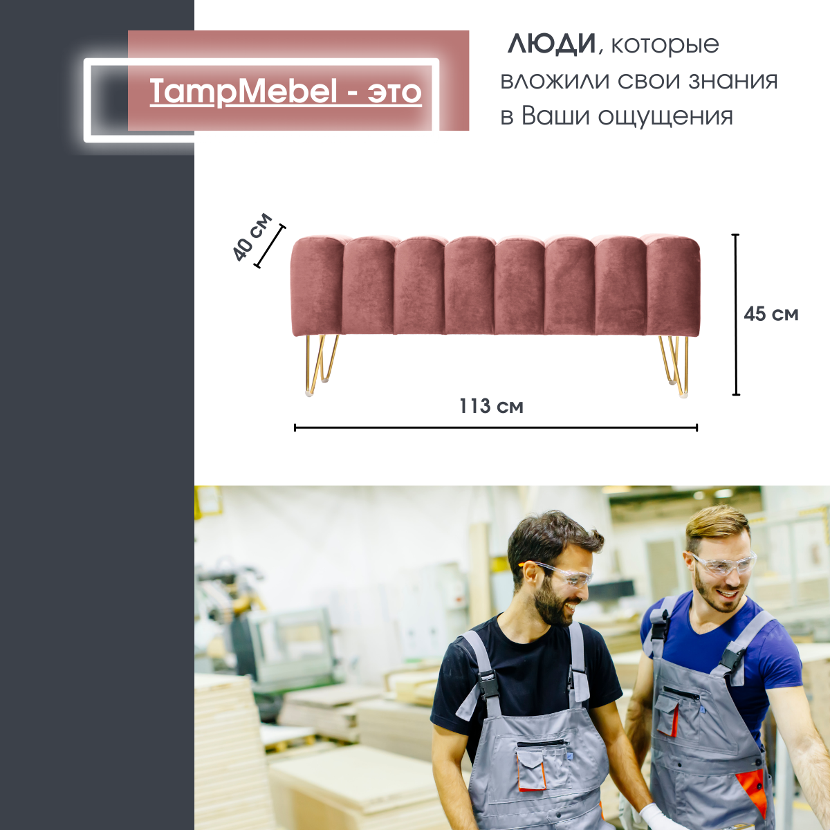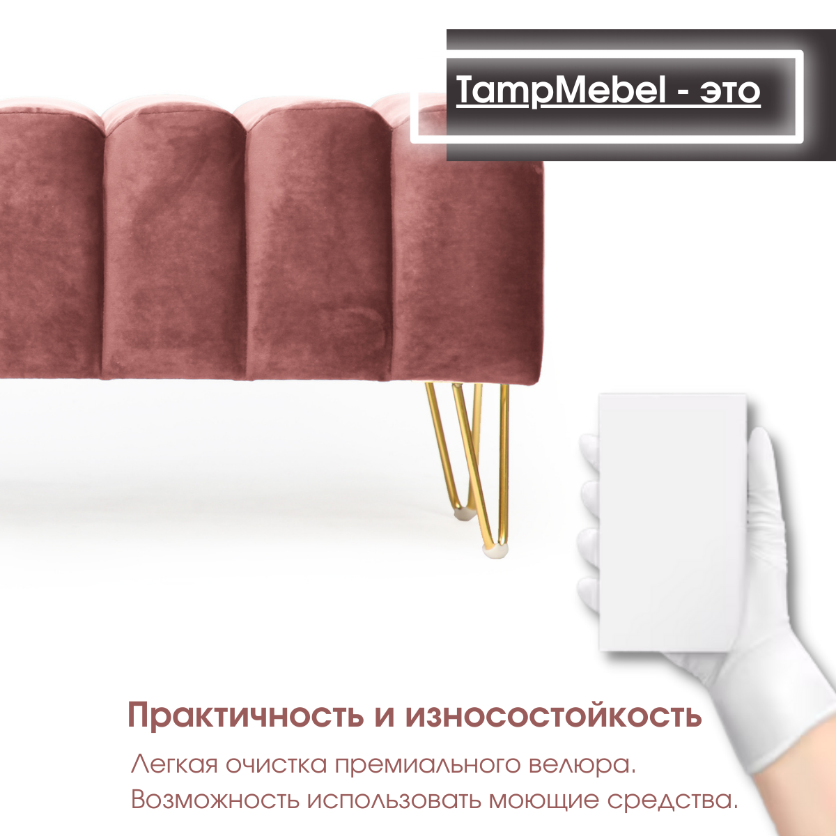 СохранитьБанкетка в спальню, пуфик для прихожей "Santorini" с треугольными ножками, ткань велюр, темно-розовая интересное: