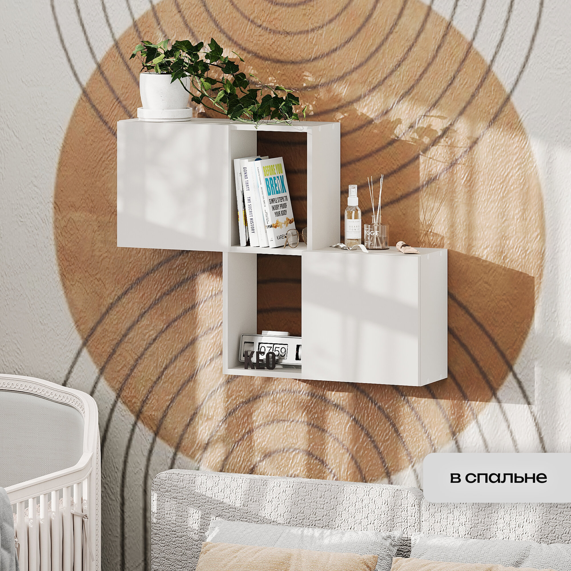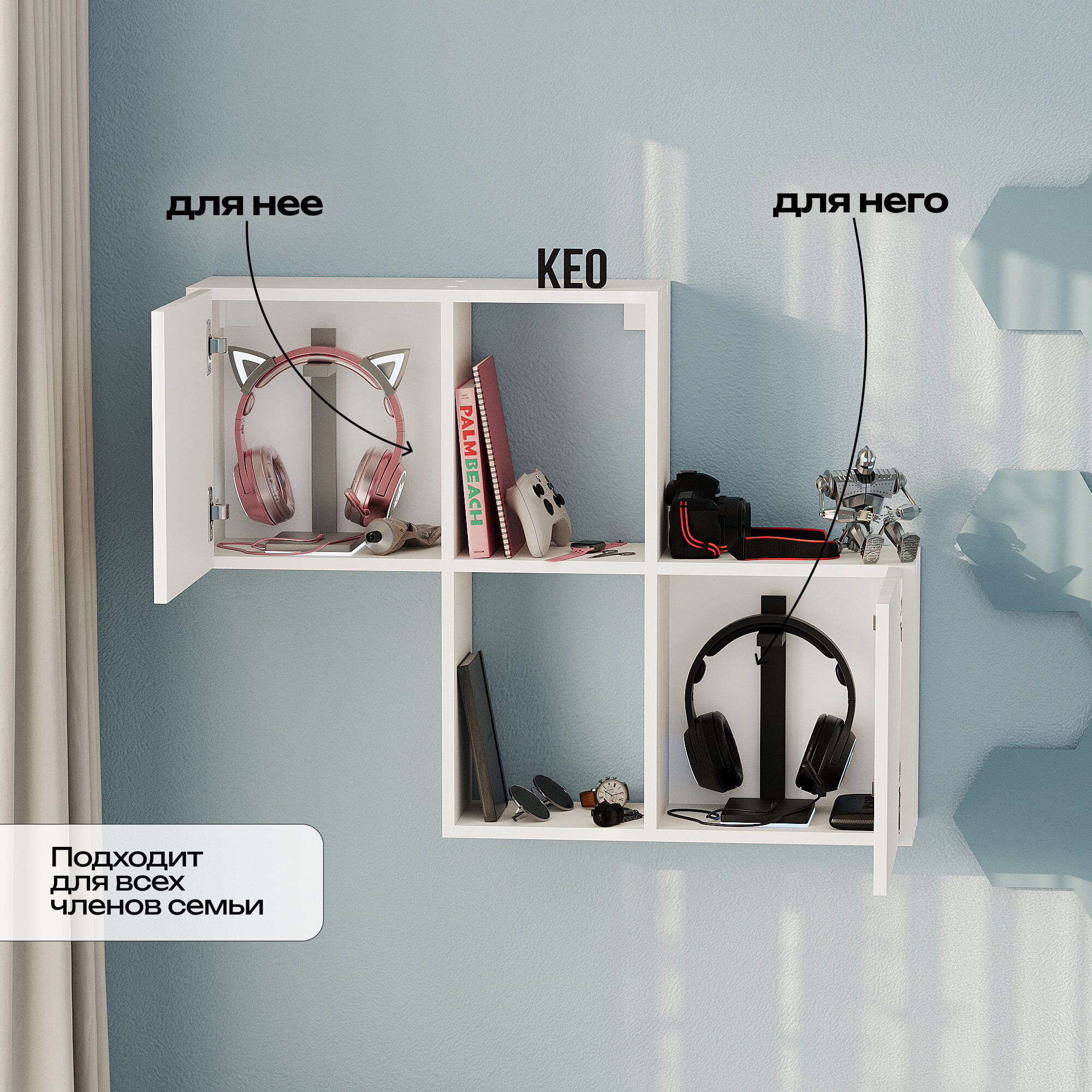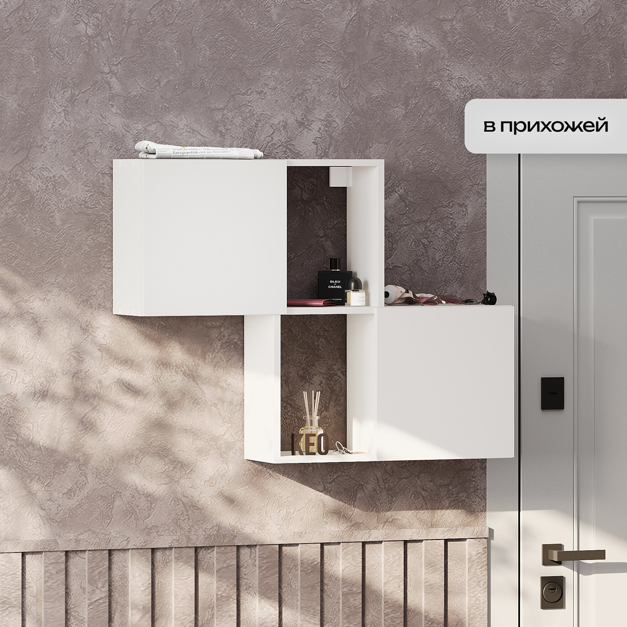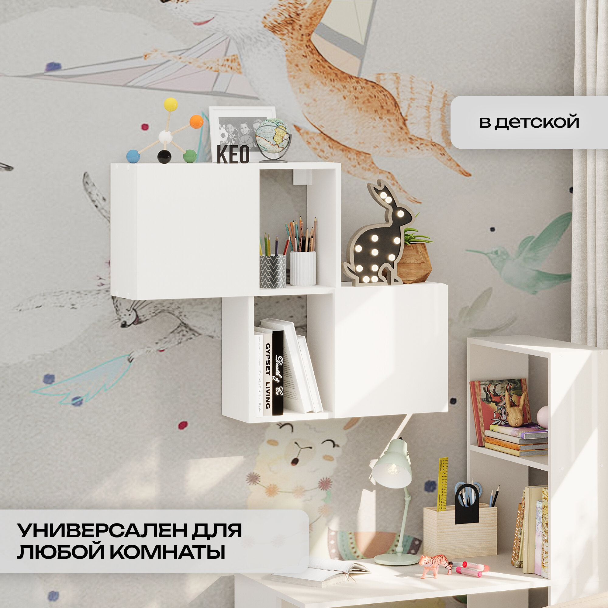 Полка настенная 72х21.9х95см модульная с дверцами для спальни детской ванной прихожей Кео ДИВ-ПЛК-427 белый интересное: