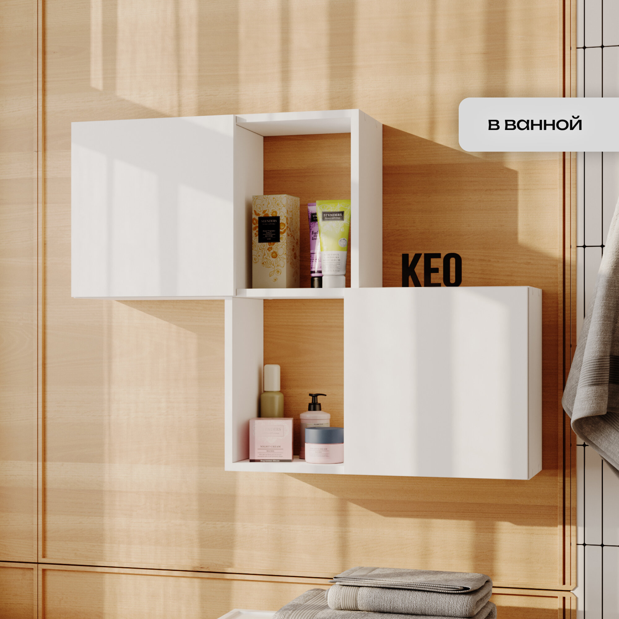 Полка навесная белая с открытыми и закрытыми полками Кео 98 x 50 x 20 см ПЛК-416