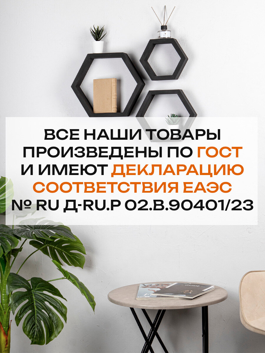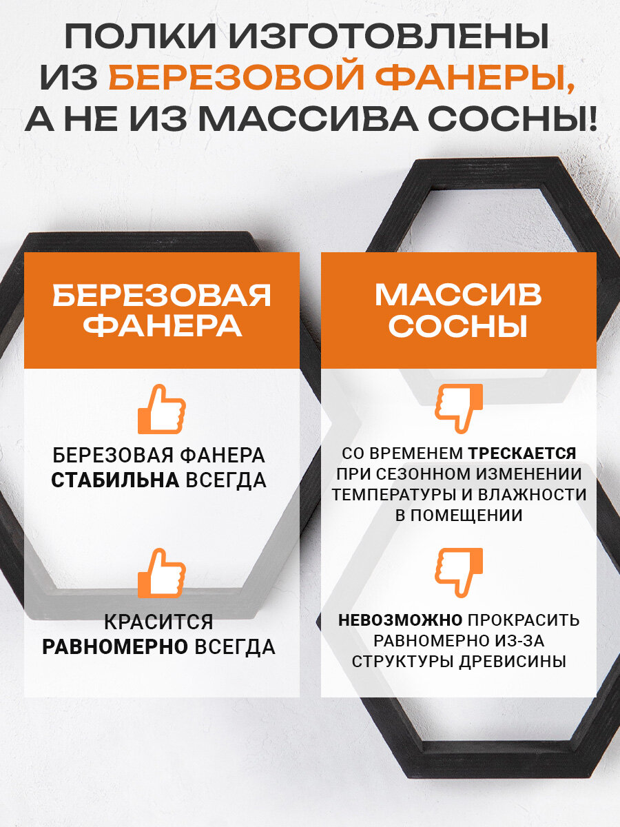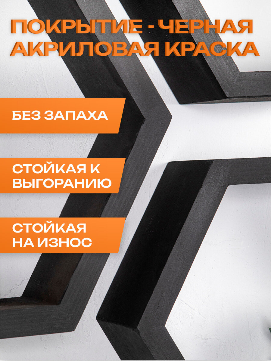 Полки соты деревянные черные, настенные навесные для декора "Абелия" интересное:
